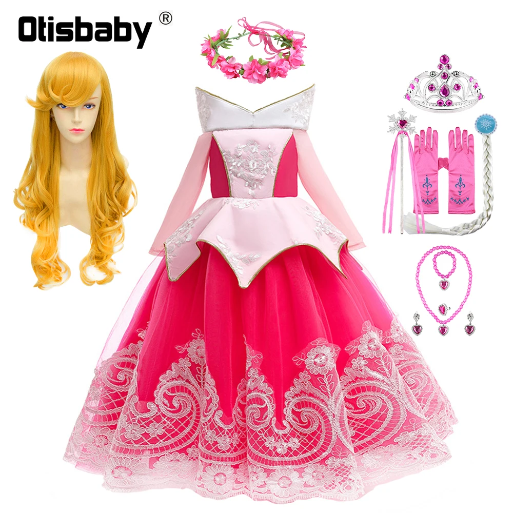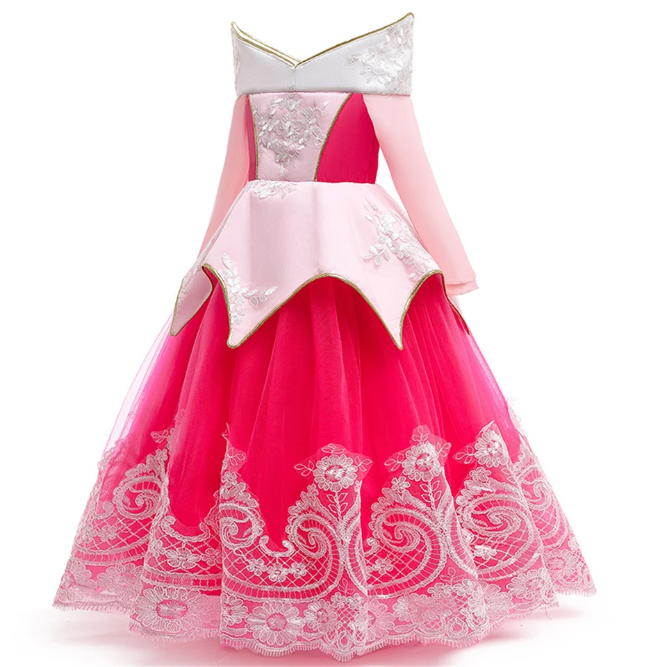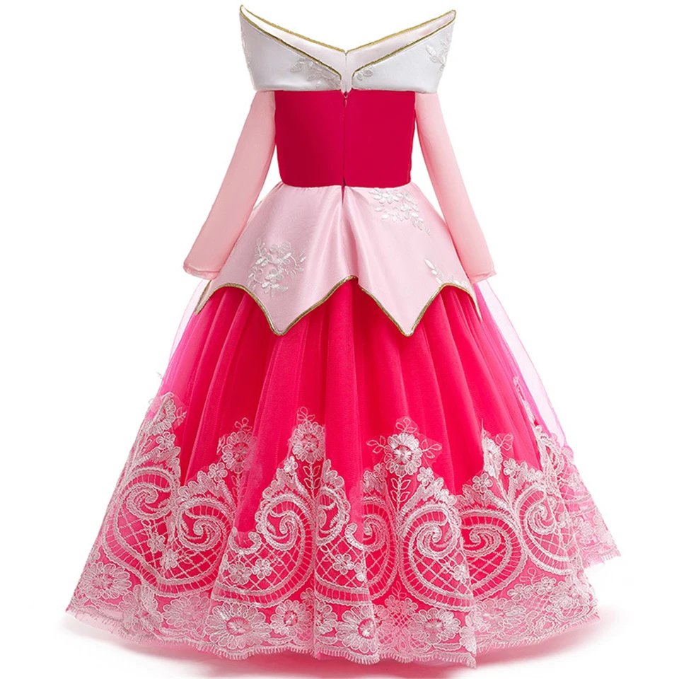 Женское платье с открытыми плечами, Розовое Кружевное Платье Принцессы Диснея