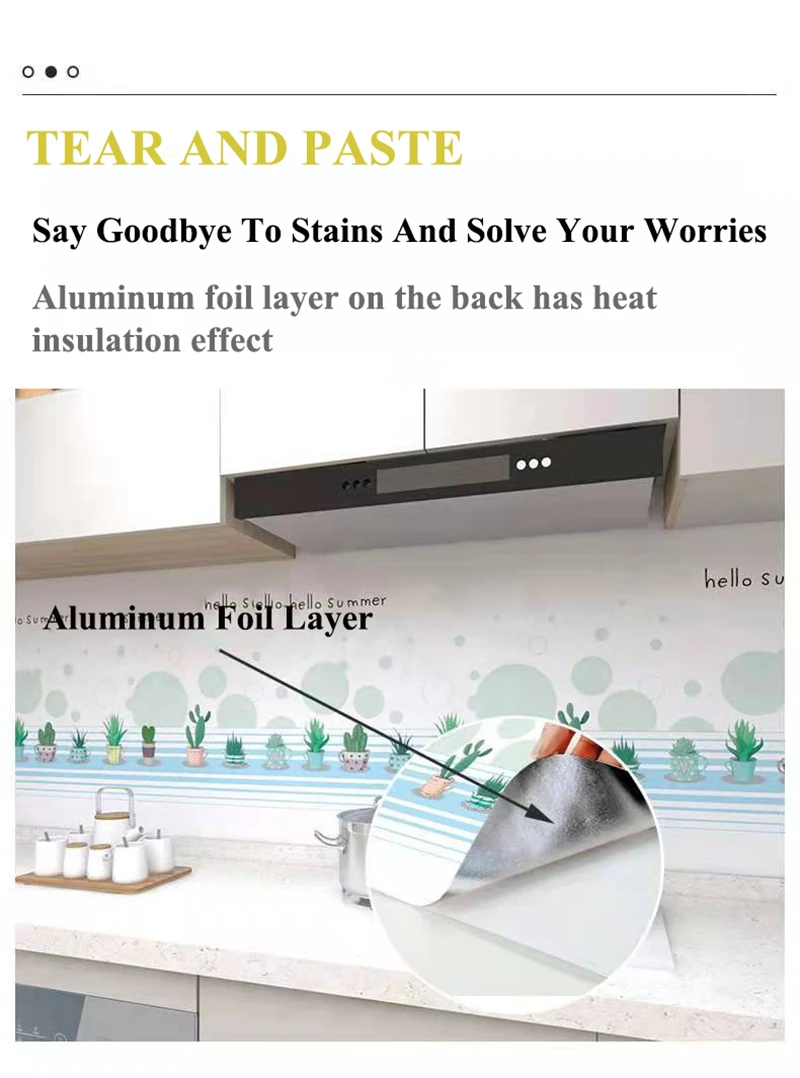 Маслостойкие и водонепроницаемые настенные наклейки из ПВХ и алюминиевой фольги для кухонной плиты, самоклеящиеся обои для украшения дома