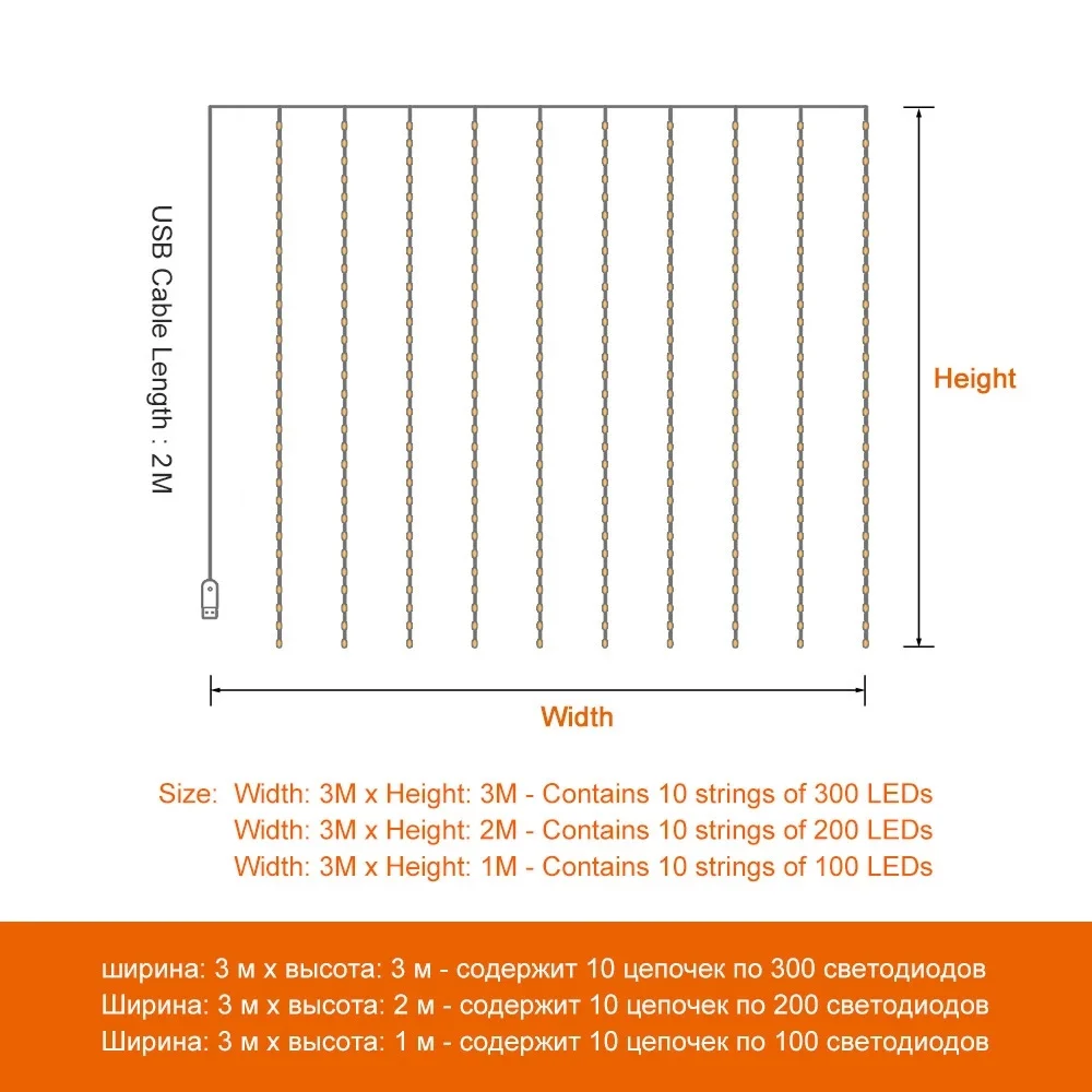 Размер: ширина: 3 м * Высота: 3 м с 300 светодиодами