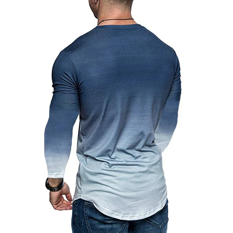 Повседневная мужская футболка с длинным рукавом и градиентным принт...