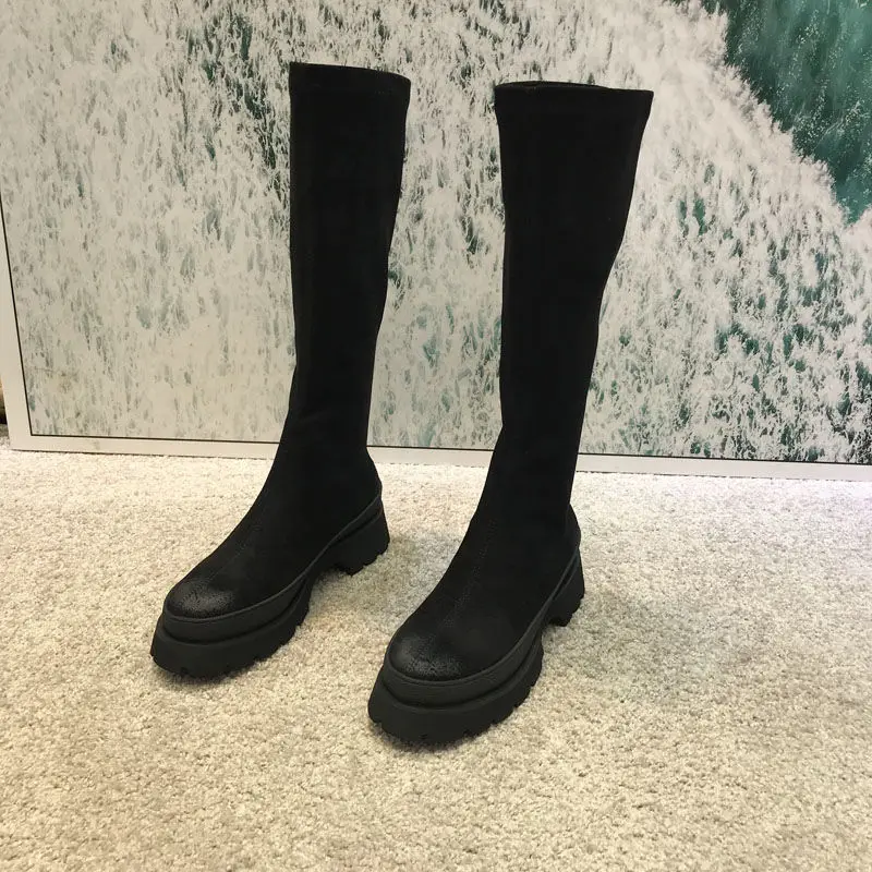 Женские ботинки, новинка осень-зима 2022, ботинки на платформе с тонким рукавом, эластичные ботинки, женские винтажные высокие ботинки с круглым носком Botas De Mujer