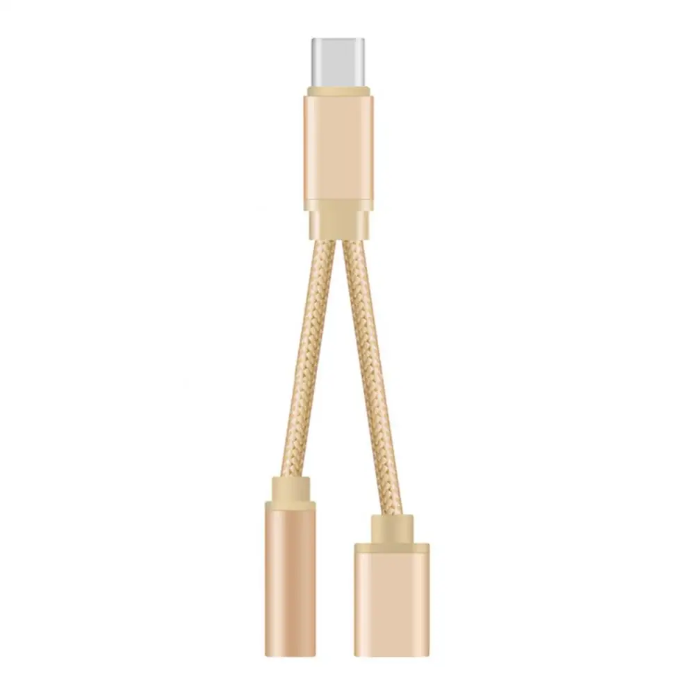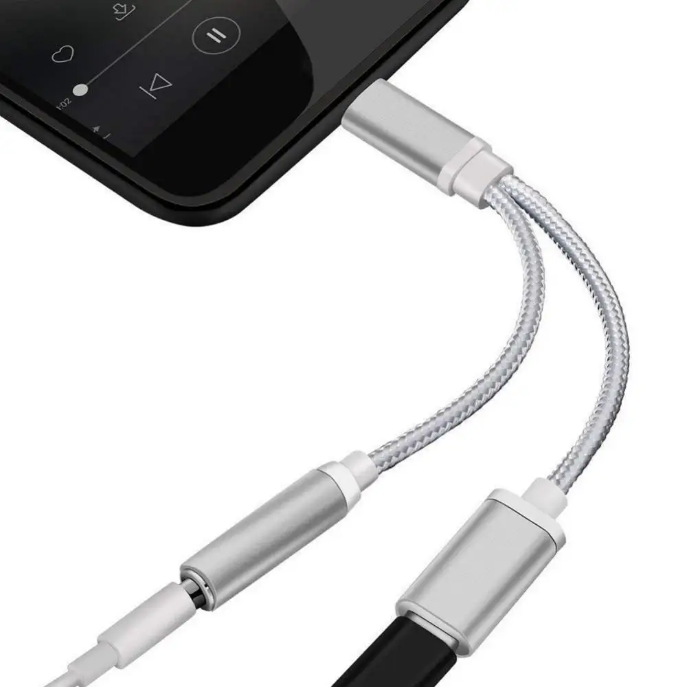Портативный высококачественный аудиокабель 2 в 1 с разъемом Type-C на 3,5 мм для наушников, зарядное устройство, адаптер, конвертер, телефонные электронные аксессуары