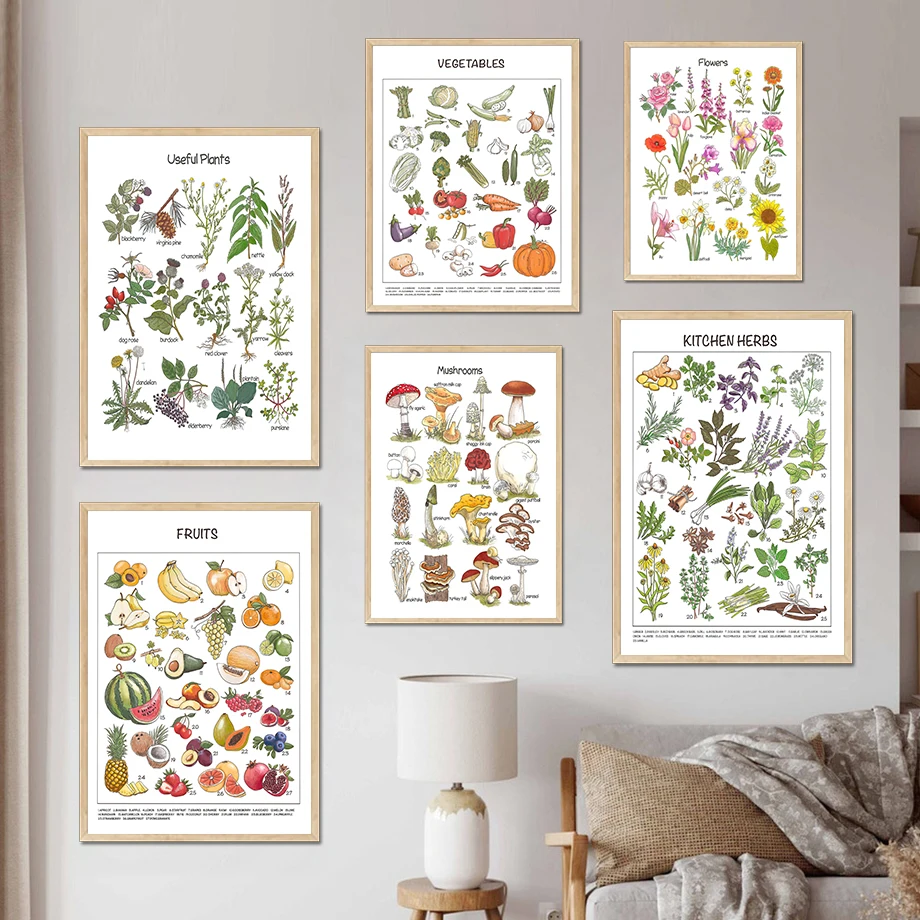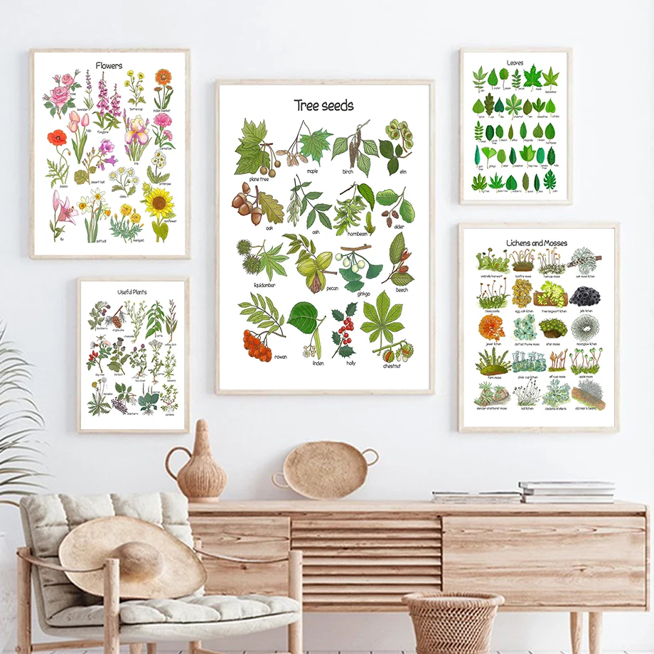 Семена дерева, цветок, гриб, фрукты Монтессори, настенная Картина на холсте, скандинавские постеры и искусства для декора гостиной
