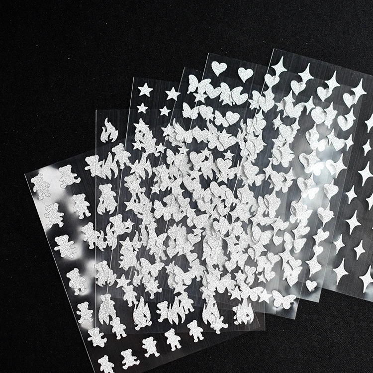 Color Цвет: блестящий серебристыйSize Размер: 8*10 смQuantity Количество: 1 шт.Pattern узор: крестообразная звезда, звезда, огонь, Бабочка, танцевальный медведь, сердцеType тип: самоклеющиеся 3D наклейки для ногтей DIYDesign дизайн: сломанная блестящая дробилка Серебряная наклейкаStyle Стиль: 2021 новый дизайн японских ногтейApplication Применение: Декоративные наклейки для ногтей