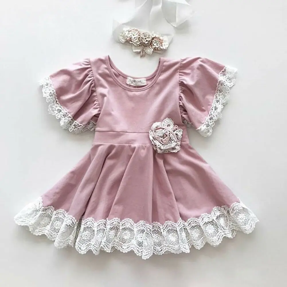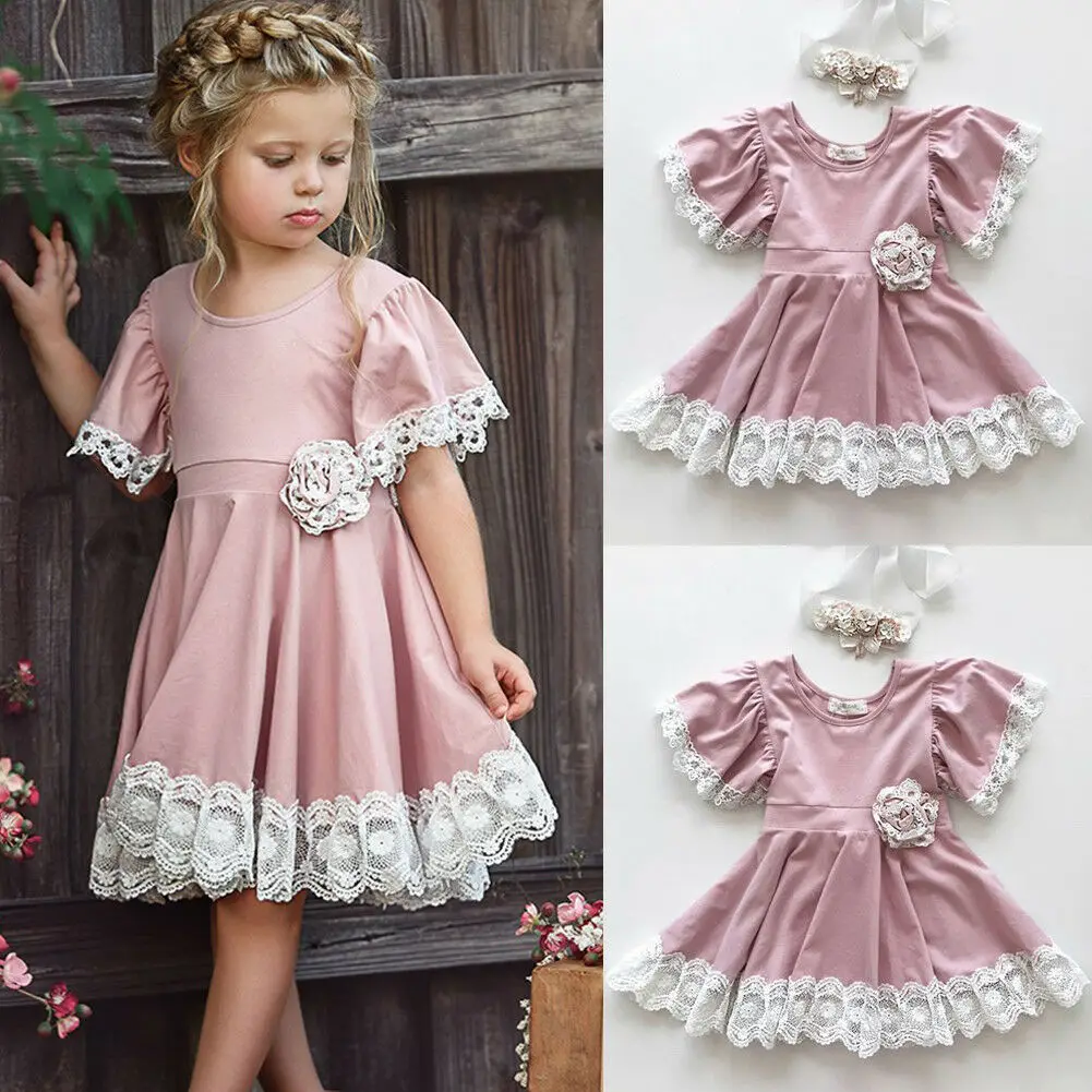 Детское платье принцессы для маленьких девочек, кружевное праздвечерние чное платье с цветочным рисунком, однотонное платье подружки невесты с кружевными рукавами, одежда для маленьких девочек