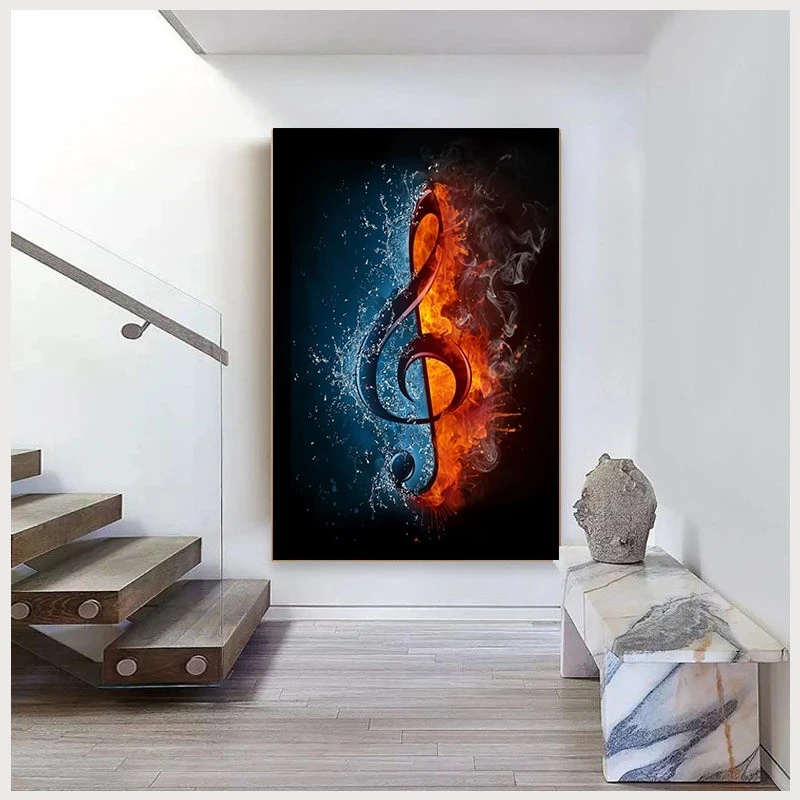 Абстрактная Картина на холсте с изображением воды и огня музыкальны...