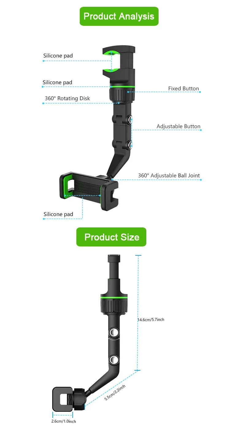 5. Вы можете закрепить держатель телефона в любом положении. В дополнение к зеркалу заднего вида, вы также можете установить его на Автокресло, кухню, спальню, чтобы облегчить учебу, работу и пройти скучное время.