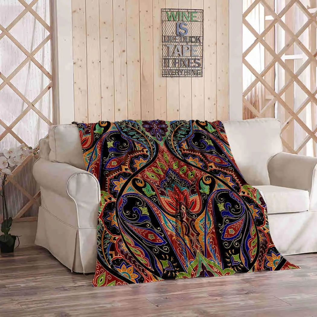 Одеяло Kuidf в стиле бохо, Индия, одеяло с пейсли, Фланелевое постельное белье в богемном стиле, роскошное, большие размеры, для дивана, кровати или дивана, 120x150 см