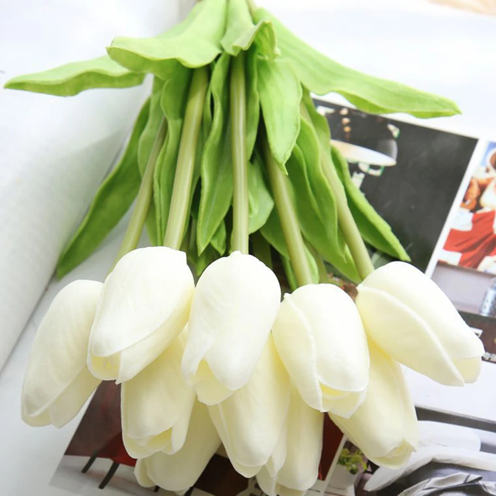 Искусственные цветы, украшение для дома на ощупь, букет тюльпанов, ...