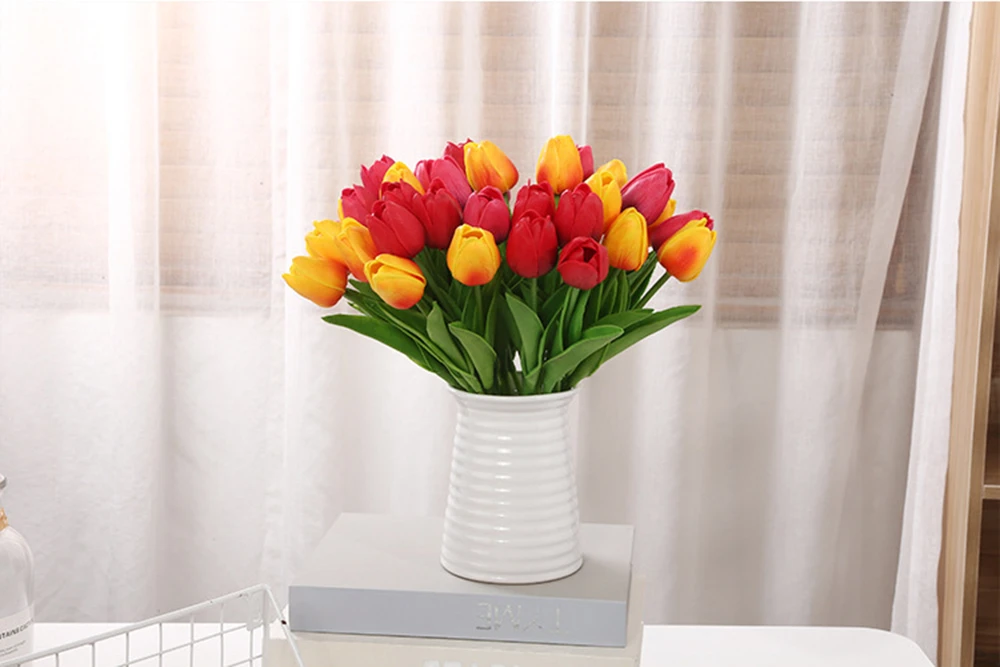 5 шт. Искусственный тюльпан, пластиковый красный, белый, желтый цве...
