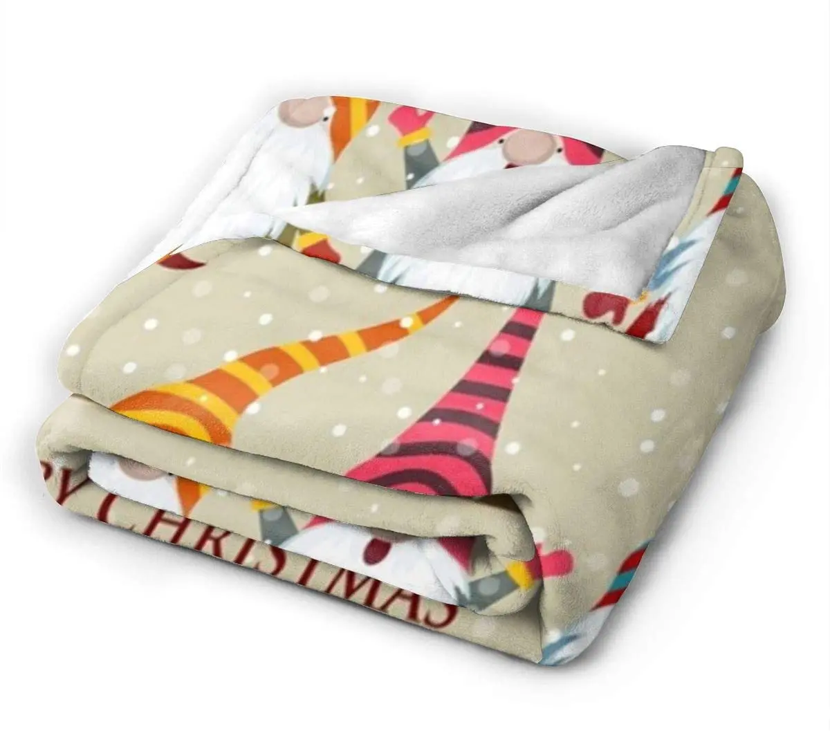 Мягкое фланелевое одеяло с рождественской картой и гномами, легкий теплый удобный флисовый плед для гостиной, спальни, дивана
