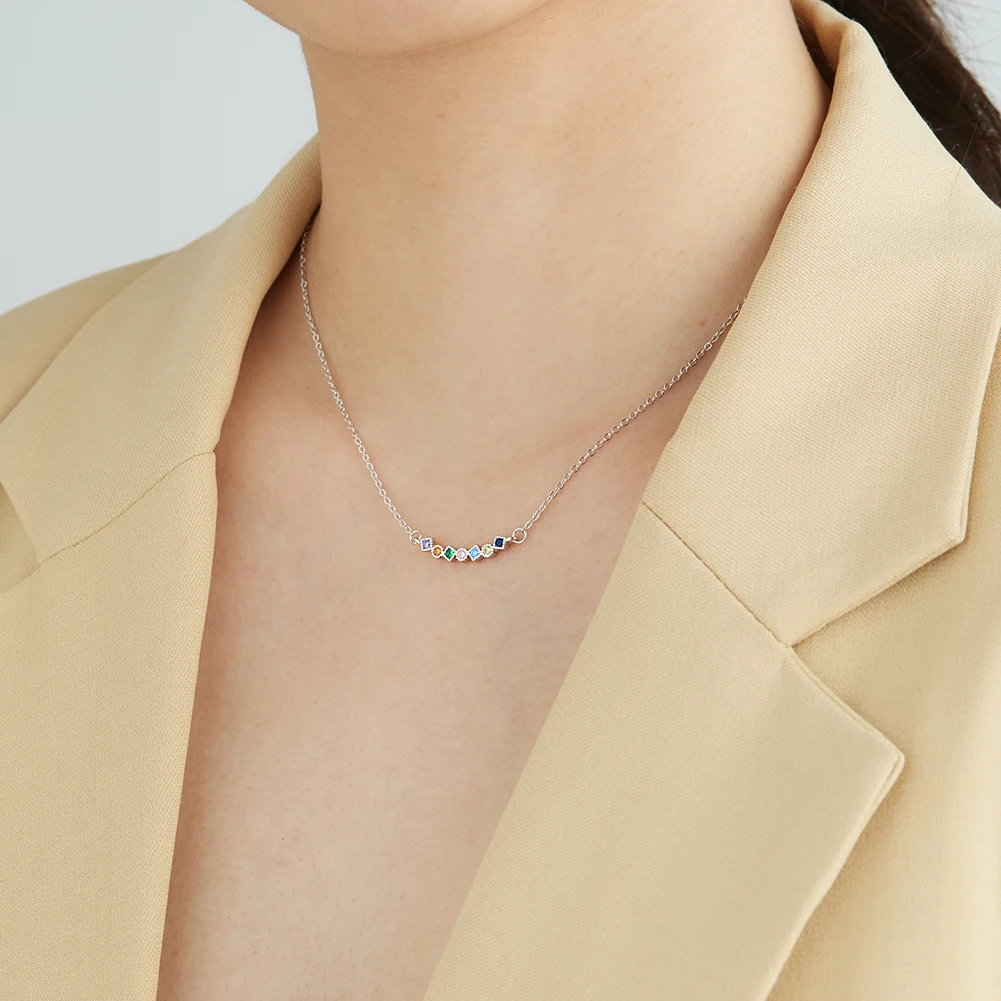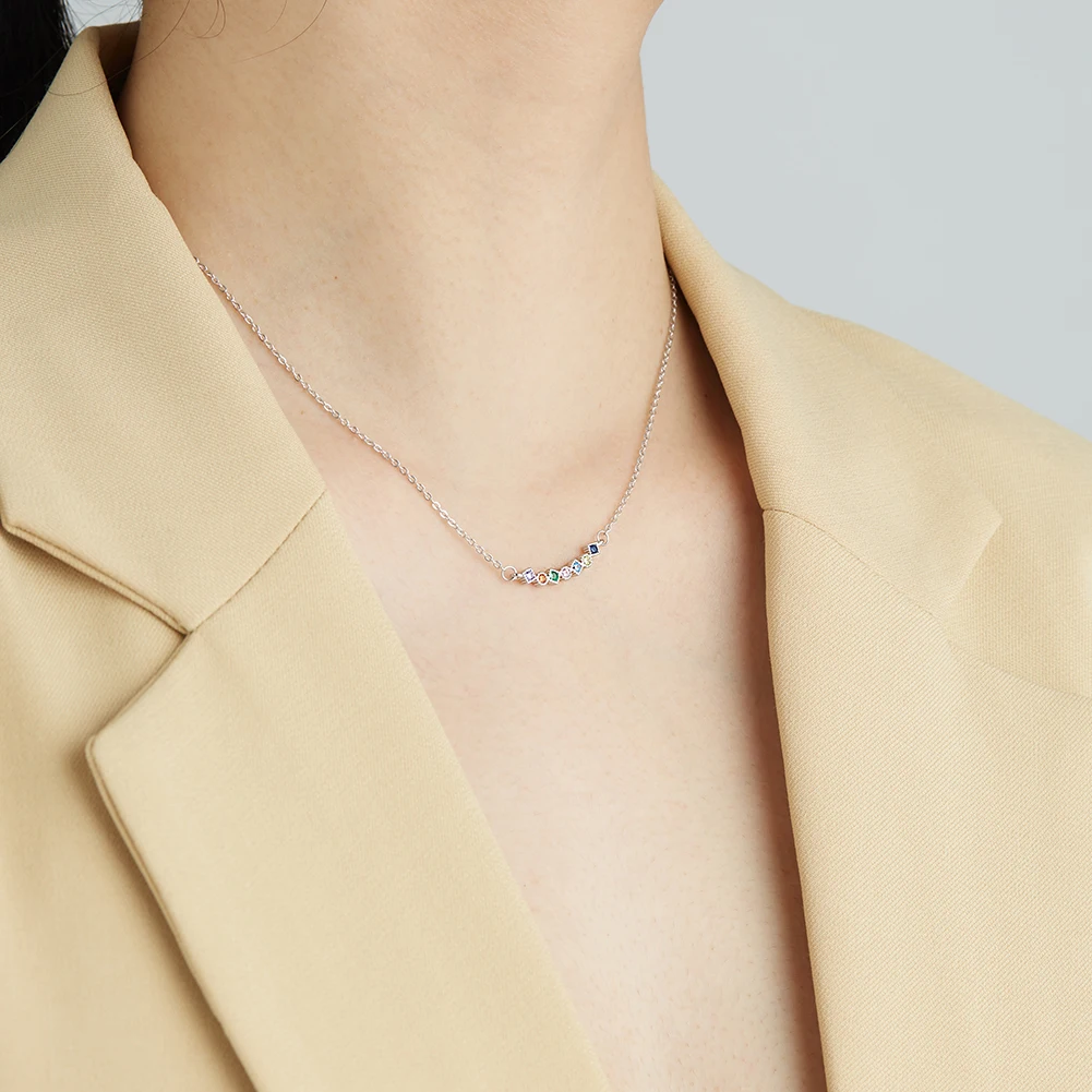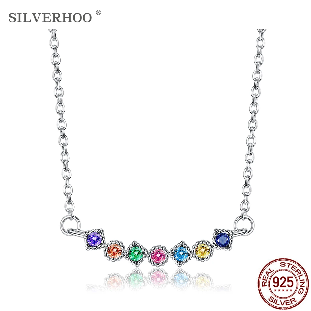 Женское ожерелье из серебра 925 пробы, с радужной подвеской