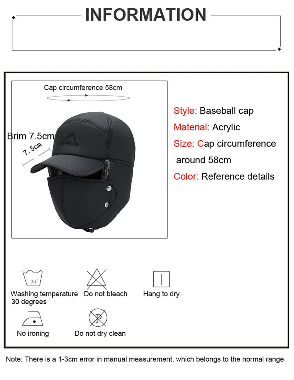 Зимняя Мужская ветрозащитная шапка, теплая Съемная бейсболка на все...