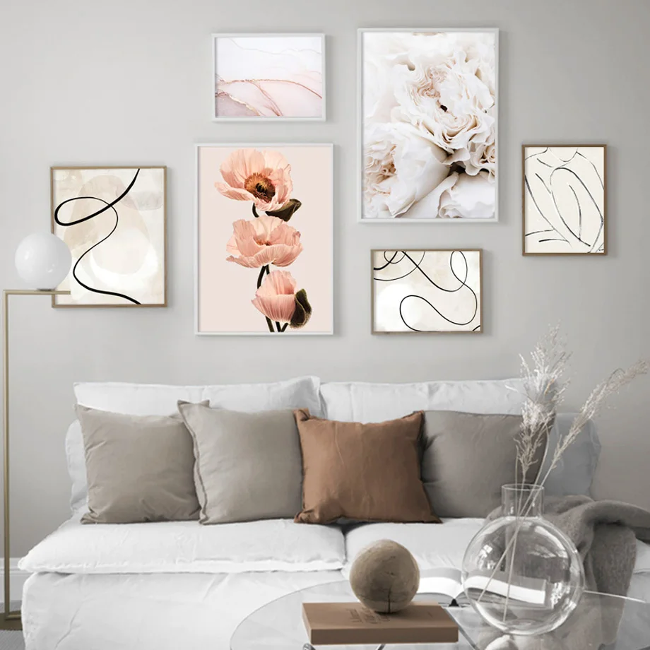 Абстрактная девушка линия Поппи мраморный Пион цветок Цитата скандинавские стены искусства холст живопись плакаты и принты Декор интерьера гостиной