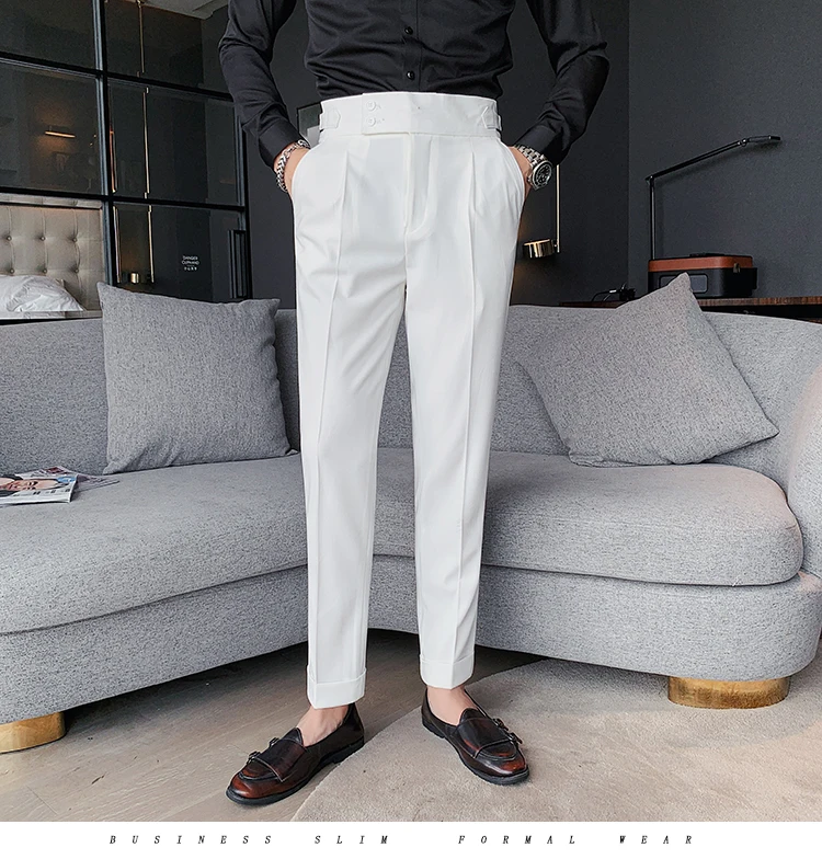 Брюки мужские с завышенной талией, однотонные, деловые, повседневные, приталенные, в британском стиле, на осень, 2021