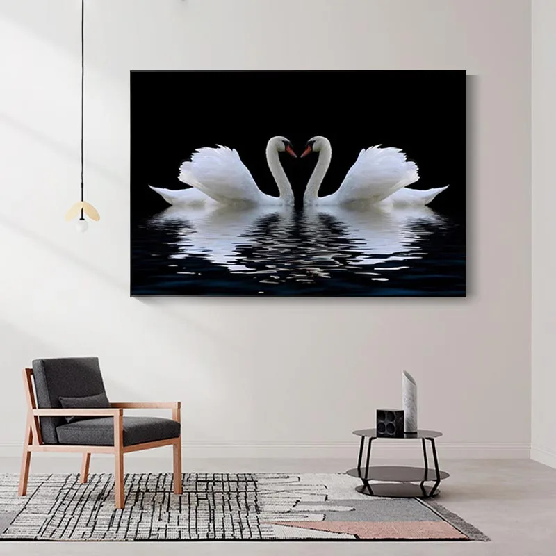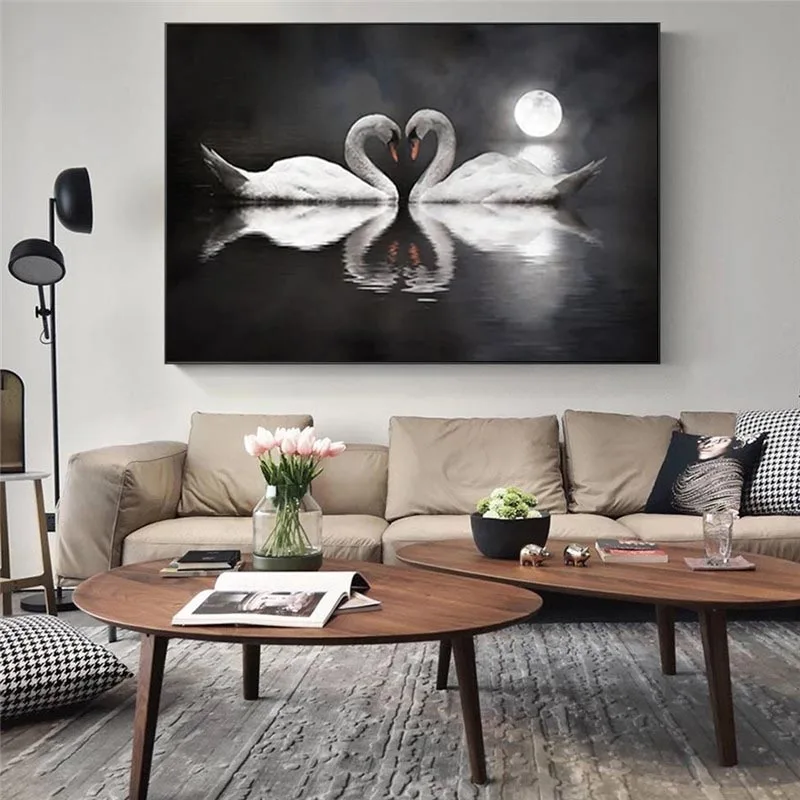 Настенная картина с изображением белого лебедя и лунного света, картина для романтических пар, скандинавский постер для гостиной, спальни, картины для домашнего декора