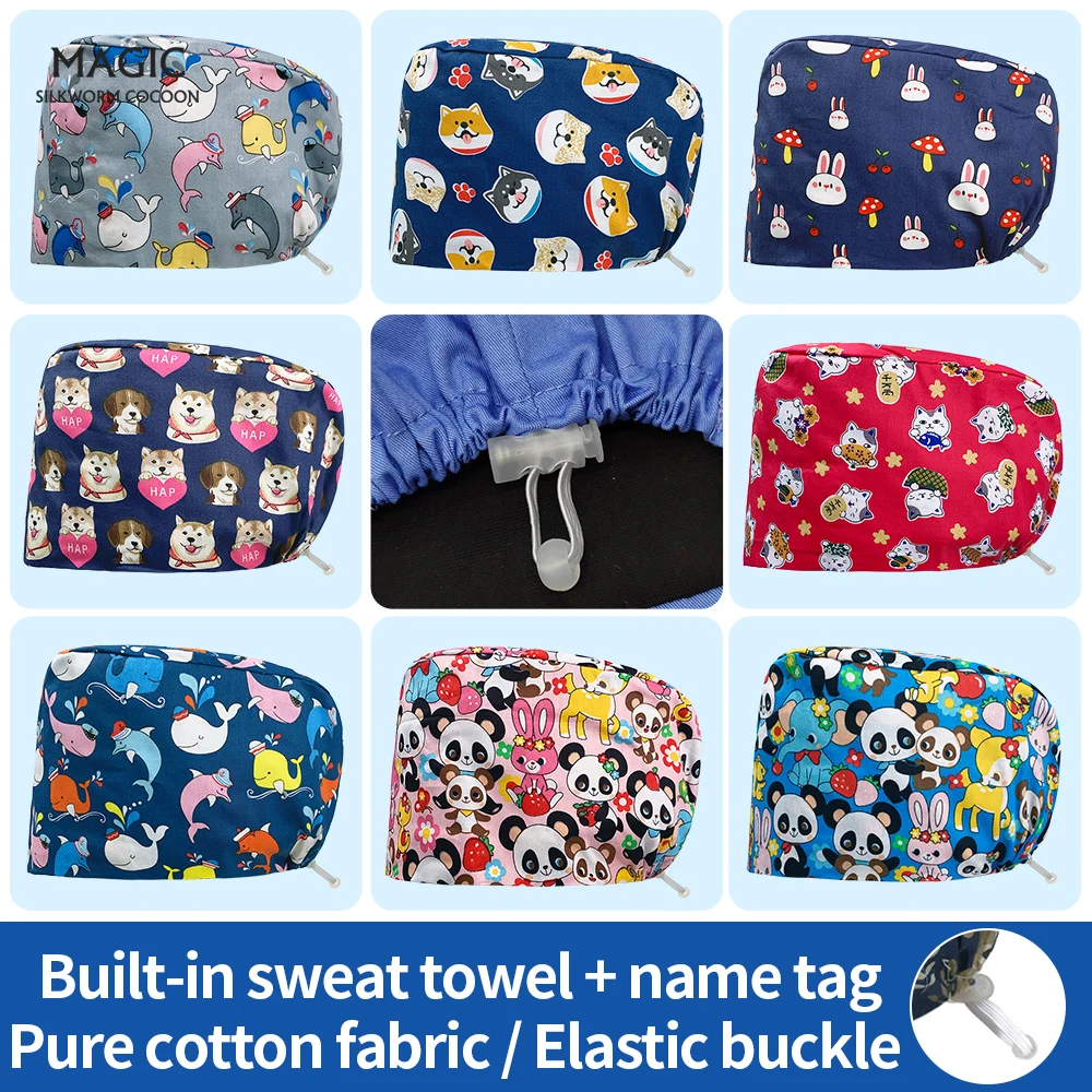 Хирургические шапочки с животным принтом, лекарственные шапочки для женщин и врачей, модные классические шапочки для медсестер с цветочным рисунком, впитывающие пот полотенца, хирургические шапочки