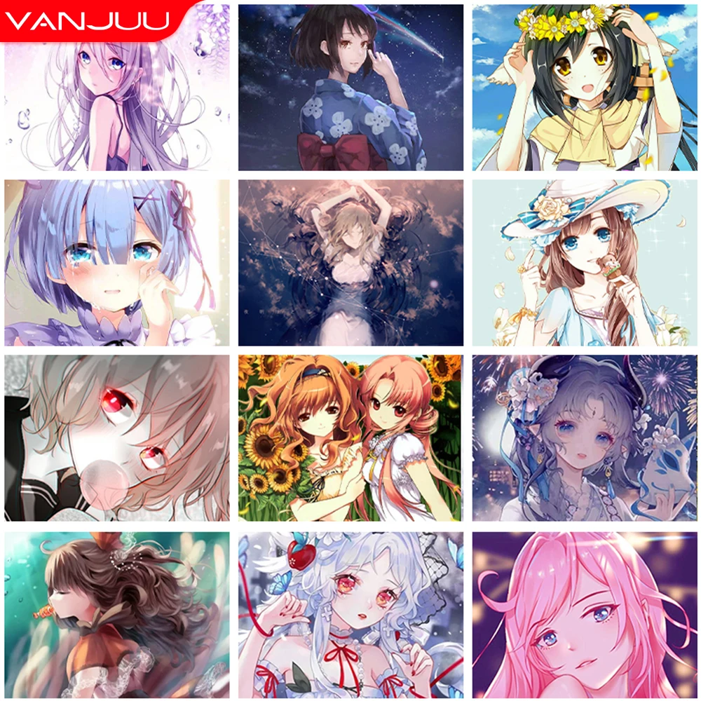 Алмазная живопись 5D, полная выкладка, японское аниме, Алмазная мозаика, мультяшный рисунок, настенный Декор для дома, стразы, живопись