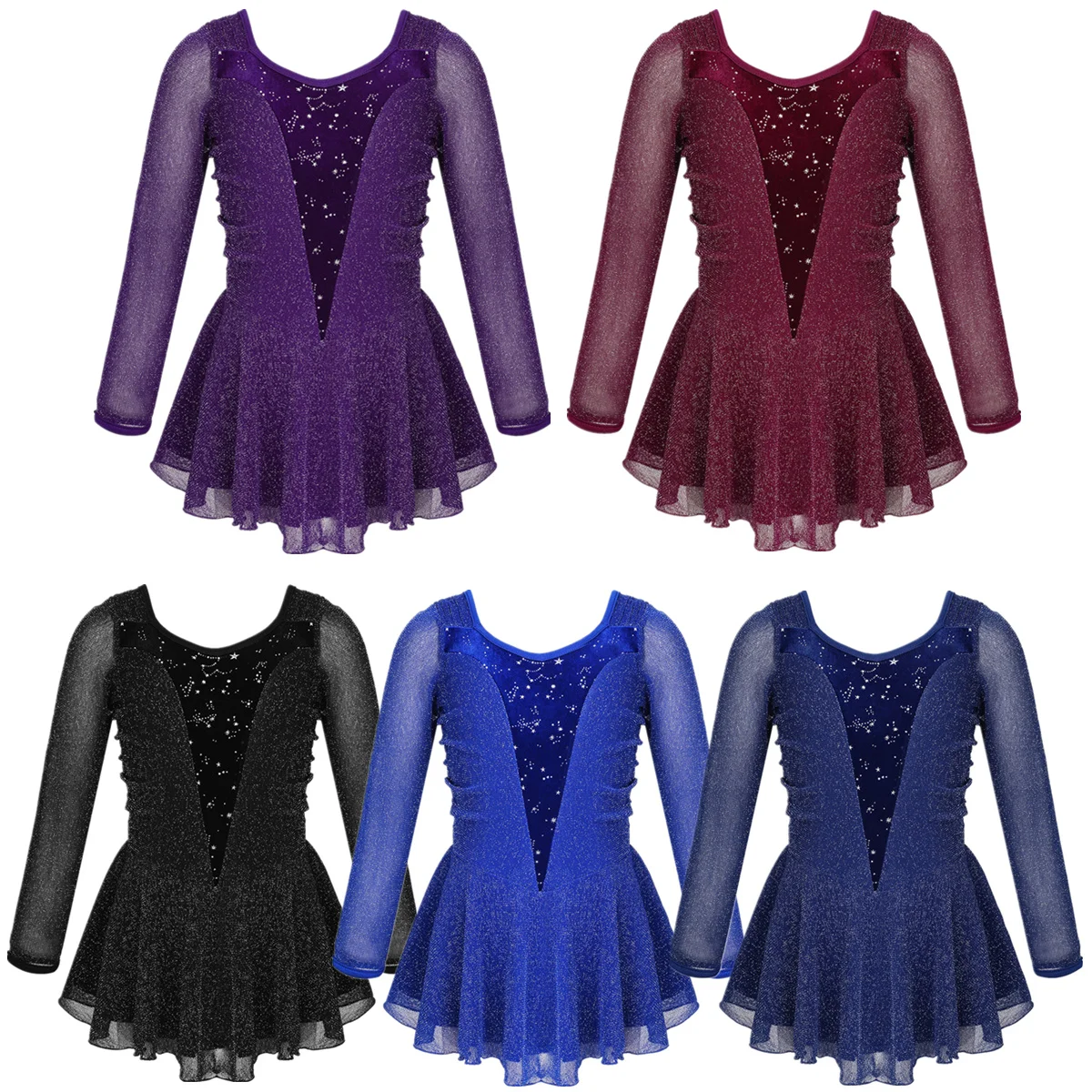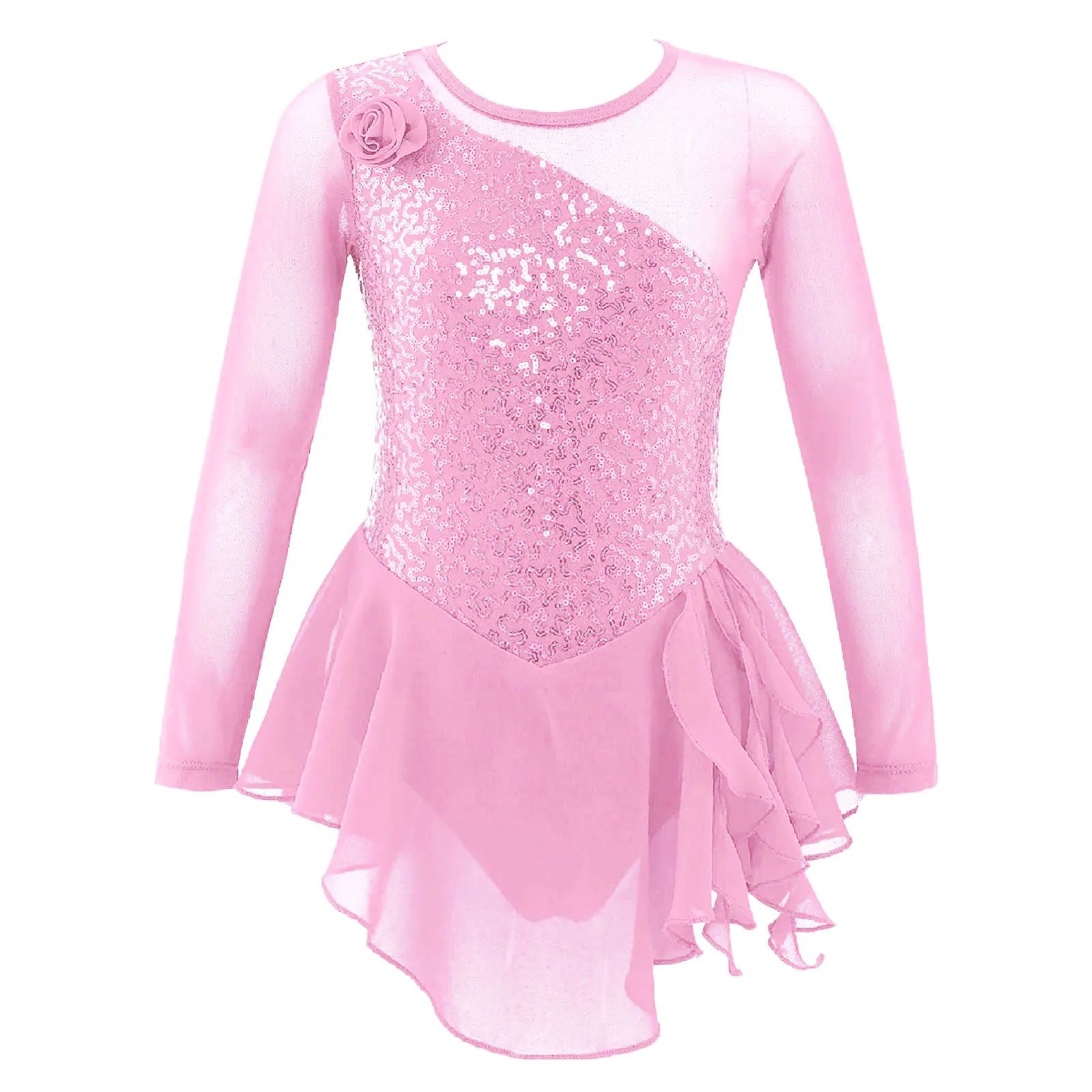 Особенности:Изготовлен из высококачественного материала, легкий светильник, мягкий, дышащий и удобный для ношения ребенка, очень гладкая поверхность на ощупь.Платье с длинными рукавами и круглым вырезом, сверкающими блестками и украшенным цветком, с большим вырезом сзади.Дизайн с модным лоскутным стилем; Многослойная неравномерная вуаль снаружи; Трусы внутри; Идеально подходит для танцев девочек.Таблица размеров означает возраст для девочек, но они предназначены только для общего руководства, рекомендуется ручная стирка в холодной воде и сушить в подвешенном состоянии.Подходит для любого случая, праздника, повседневной жизни, танцевальной одежды для балета, милой одежды, сцены, соревнований, игр и т. д.