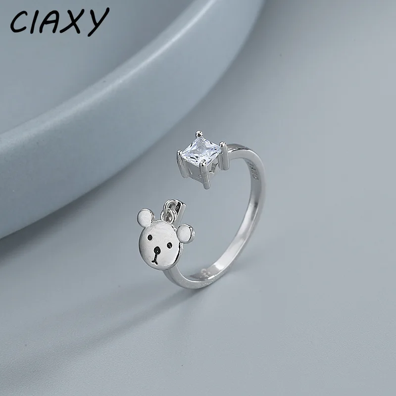 CIAXY 925 пробы серебряные милые очаровательные кольца в виде медведя для женщин и девушек с микро-инкрустацией цирконием регулируемое Открытое кольцо милые ювелирные изделия в подарок