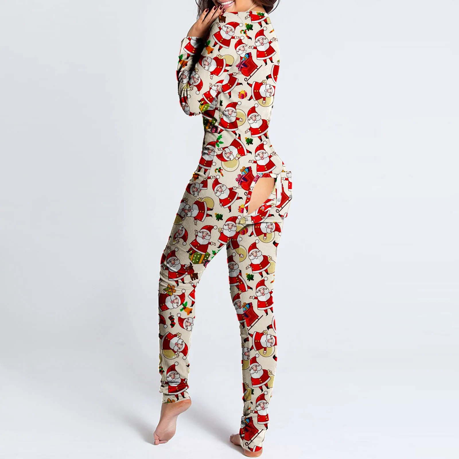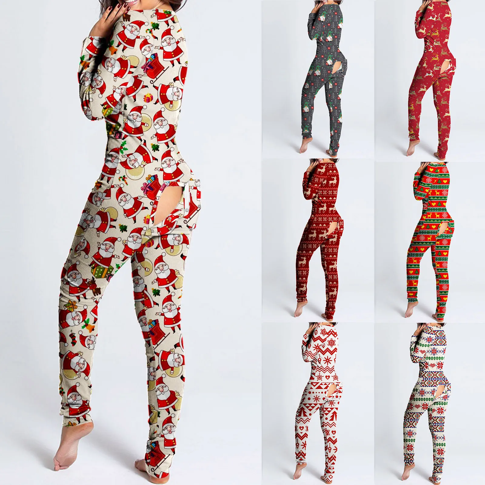 Пижама-комбинезон женская с V-образным вырезом и длинным рукавом