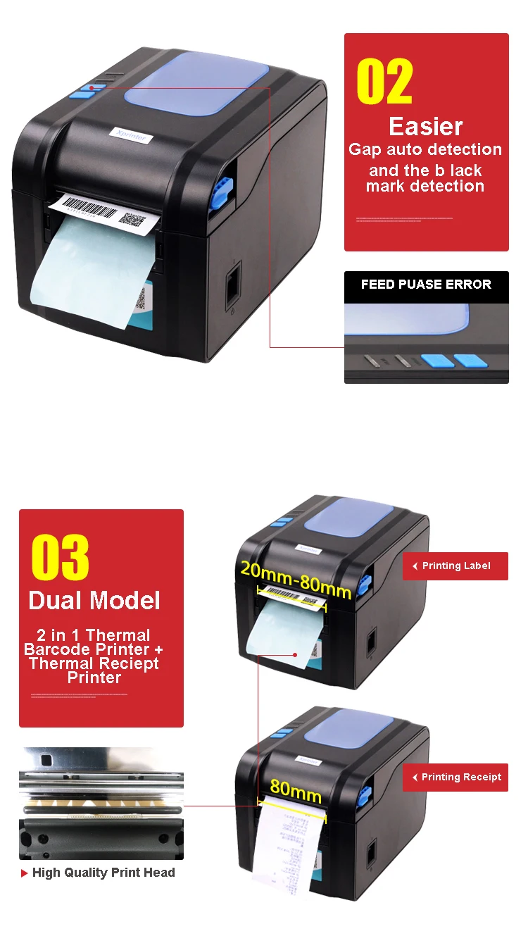 Печать: XP-370BМетод печати: прямой тепловойРазрешение: 8 точек/мм (203 точек/дюйм)Ширина печати: 76 ммСкорость печати: Макс: 152 мм/сек. мин: 50,8 мм/сек.Память DRAM: 4M вспышка: 4MДатчик температуры печатающей головки: термочувствительное сопротивлениеБумага существует Обнаружение: ФотодатчикИнтерфейс: USB + SerialШтрих-кодЛинейные штрих-коды: CODE128, EAN128, ITF, CODE39, CODE93, EAN13, EAN13 + 2, EAN13 + 5, EAN8, EAN8 + 2, EAN8 + 5, CODABAR, post、 UPC-A UPCA + 2, UPCA + 5, UPC-E, UPCE + 2, UPC-E + 5, CPOST, MSI, MSIC, PLESSEY, ITF14, EAN142-мерных: PDF417 / QR-код/матрица данныхВнутренний Шрифт: шрифт от 0 до 8Увеличение и вращение:(0 °, 90 °, 270 °, 360 °) 1-10 раз увеличение в обоих направлениях; 0 °, 90 °, 270 °, вращение на 360 °Изображение: монохроматический PCX, BMP файлы изображений могут быть загружены на FLASH, DRAMКоманды: TSPL, ESC/POSВход источника питания: 24VDC, 2.5AВес брутто: 1,5 кгРазмеры: 231 × 163 × 150,7 мм (D×W×H)Рабочая среда: 0 ~ 45 ℃, 10 ~ 80% RHСреда хранения:-10 ~ 60 ℃, 10 ~ 90% RH (без конденсации)Тип бумаги: рулон бумаги, наклейка, клейкая наклейка и т. Д.Ширина бумаги: 16 мм ~ 82 ммВнешний диаметр рулона: максимум 100 ммВнутренний диаметр рулона: мин 25 ммТип бумажного выключения: оторвать или снять