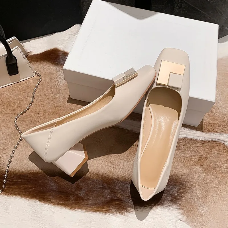 Туфли-лодочки женские с квадратным носком, высокий квадратный каблук, без застежки, Офисная Классическая обувь, 9456N