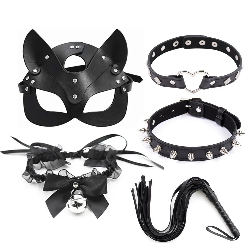 Эротические костюмы, фетиш, бондаж, наборы, кожа, маска для кошки, шейный воротник, кнут, рот, кляп, флирт, секс-игрушки для мужчин и женщин, 18, БДСМ, аксессуары
