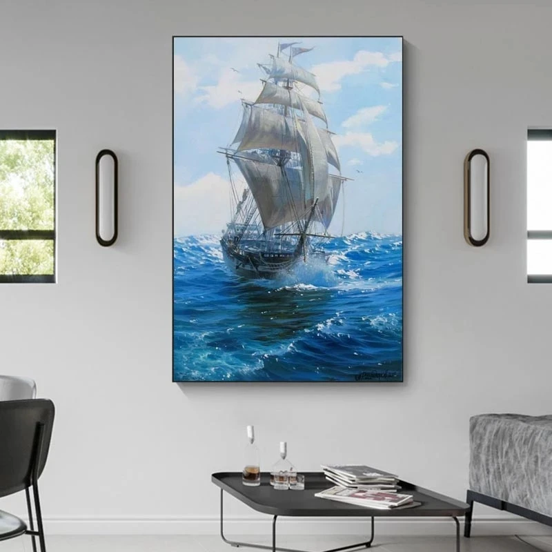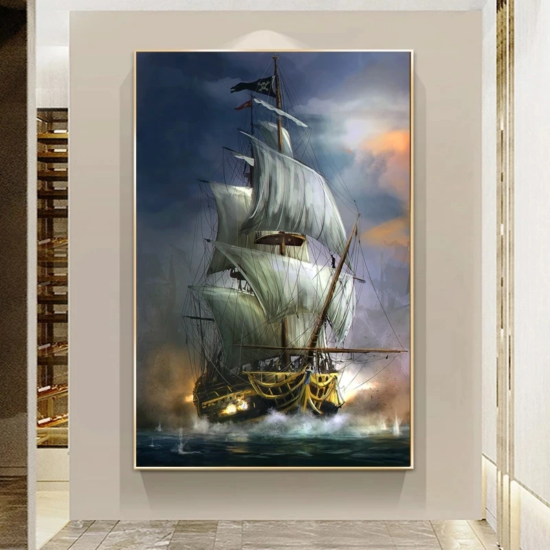 ВИНТАЖНАЯ фотография корабля пиратского корабля, искусство на стену с рисунком, синий океан, белый парусный корабль для украшения интерьера гостиной icon star icon star icon star icon star icon star