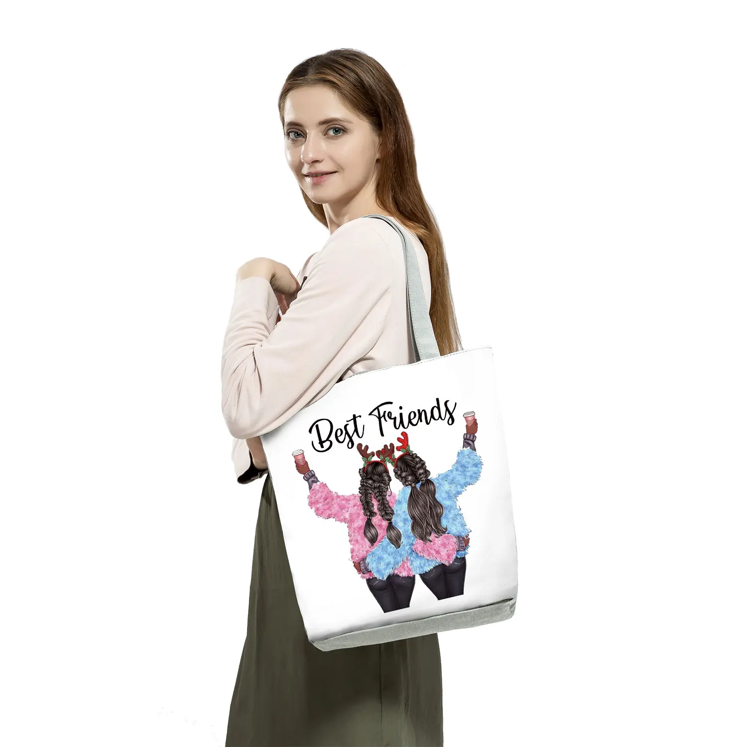 С принтом в виде героев сумки-шопперы для женщин повседневные сестры сумки для повторного использования хозяйственная сумка большой Ёмкость сумка пользовательского образца