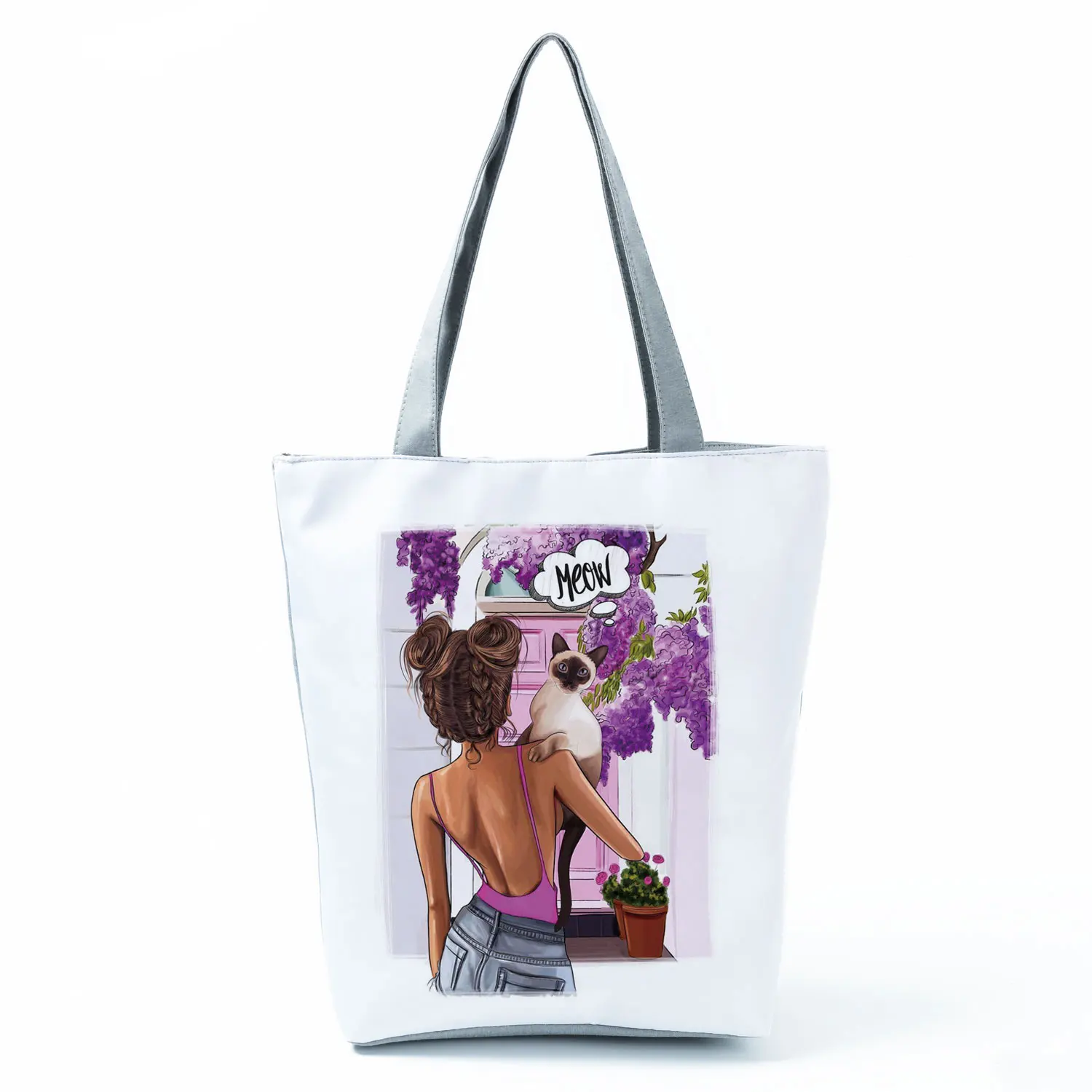Женские повседневные сумки с принтом персонажей, многоразовая сумка для покупок, вместительная сумка через плечо с индивидуальным рисунком