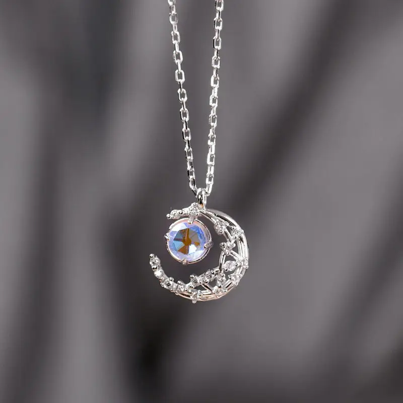Светильник с роскошным нишевым дизайном, ожерелье в стиле холода, серебро 925 пробы, звезда, луна, светильник, застежка на цепочке
