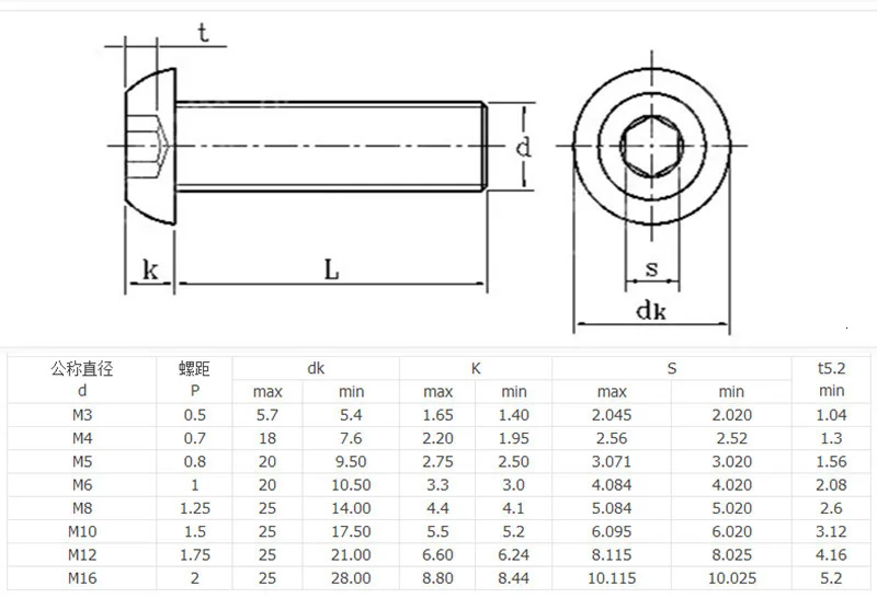 Винты с шестигранной головкой M2 M2.5 M3 M4 M5 M6 M8, 10-50 шт.лот, ISO7380, с круглой головкой