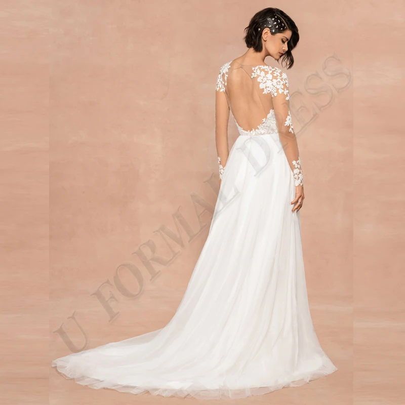Сексуальное свадебное платье с открытой спиной и аппликацией, круже...