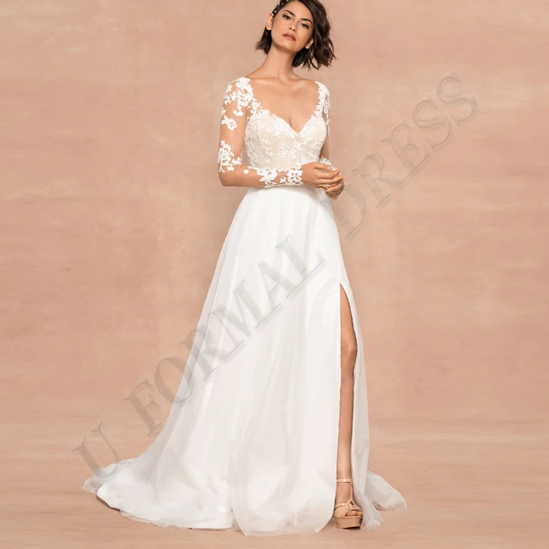 Элегантное свадебное платье в стиле бохо, ТРАПЕЦИЕВИДНОЕ ПЛАТЬЕ С V...