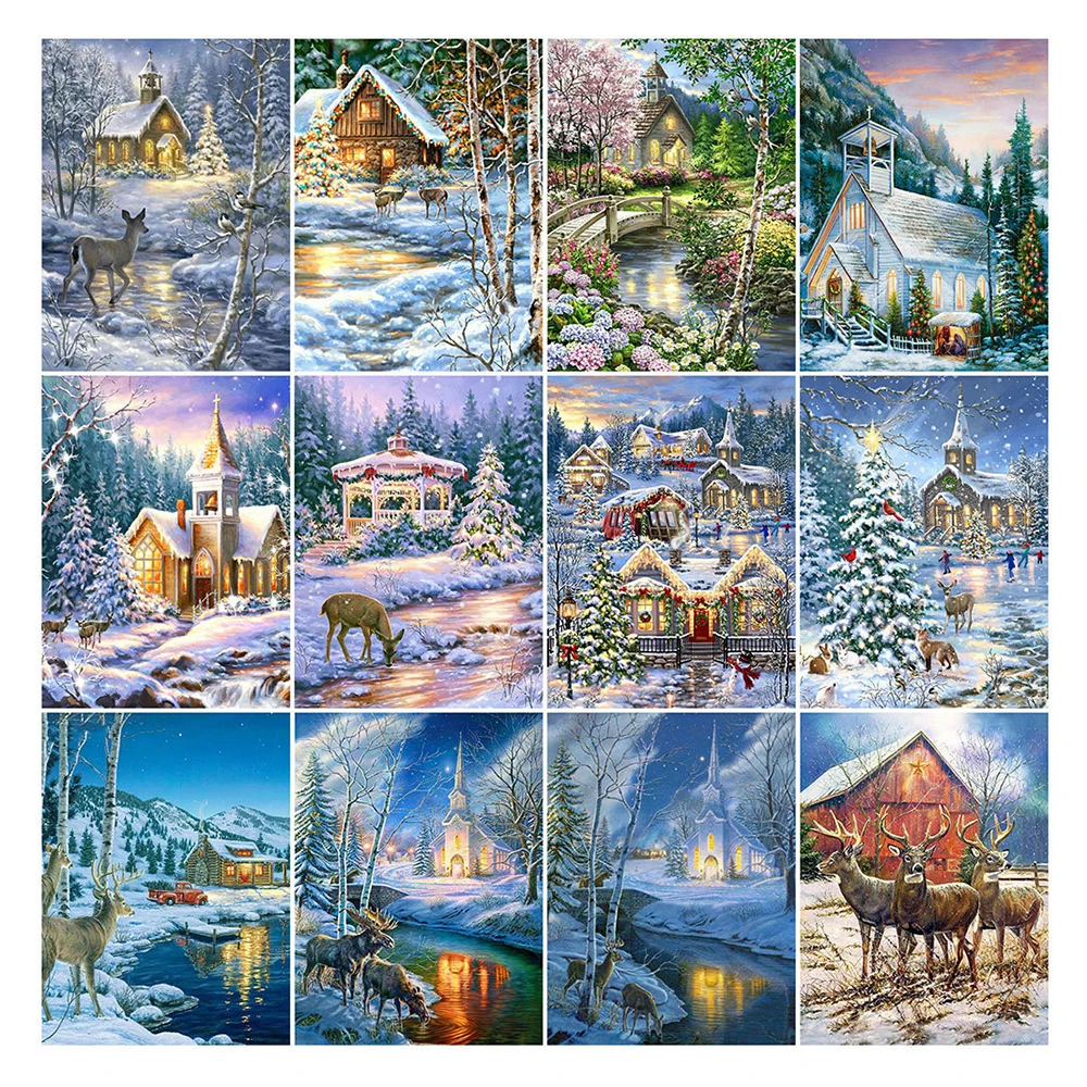 Алмазная 5D картина с оленем YI Bright, полная вышивка, церковная мозаика, Зимний Вышивка крестиком, Рождественский Декор