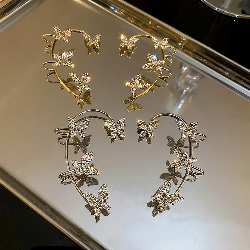 1 шт. модные хрустальные серьги-клипсы с бабочками новые золотые клипсы для ушей ювелирные изделия