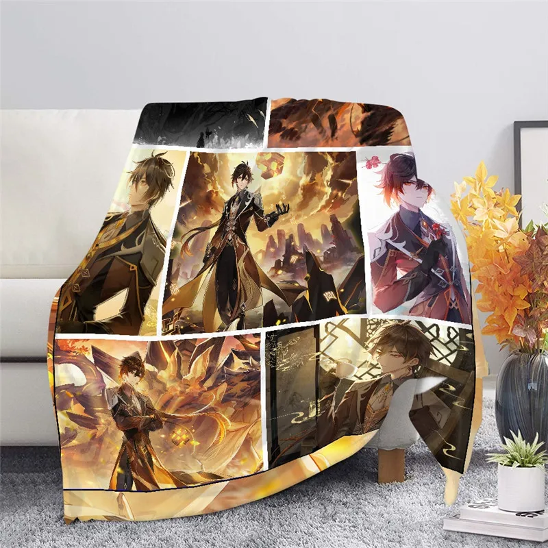 Мягкие плюшевые одеяла плед геншин Zhongli с принтом, удобные зимние повседневные покрывала в стиле аниме