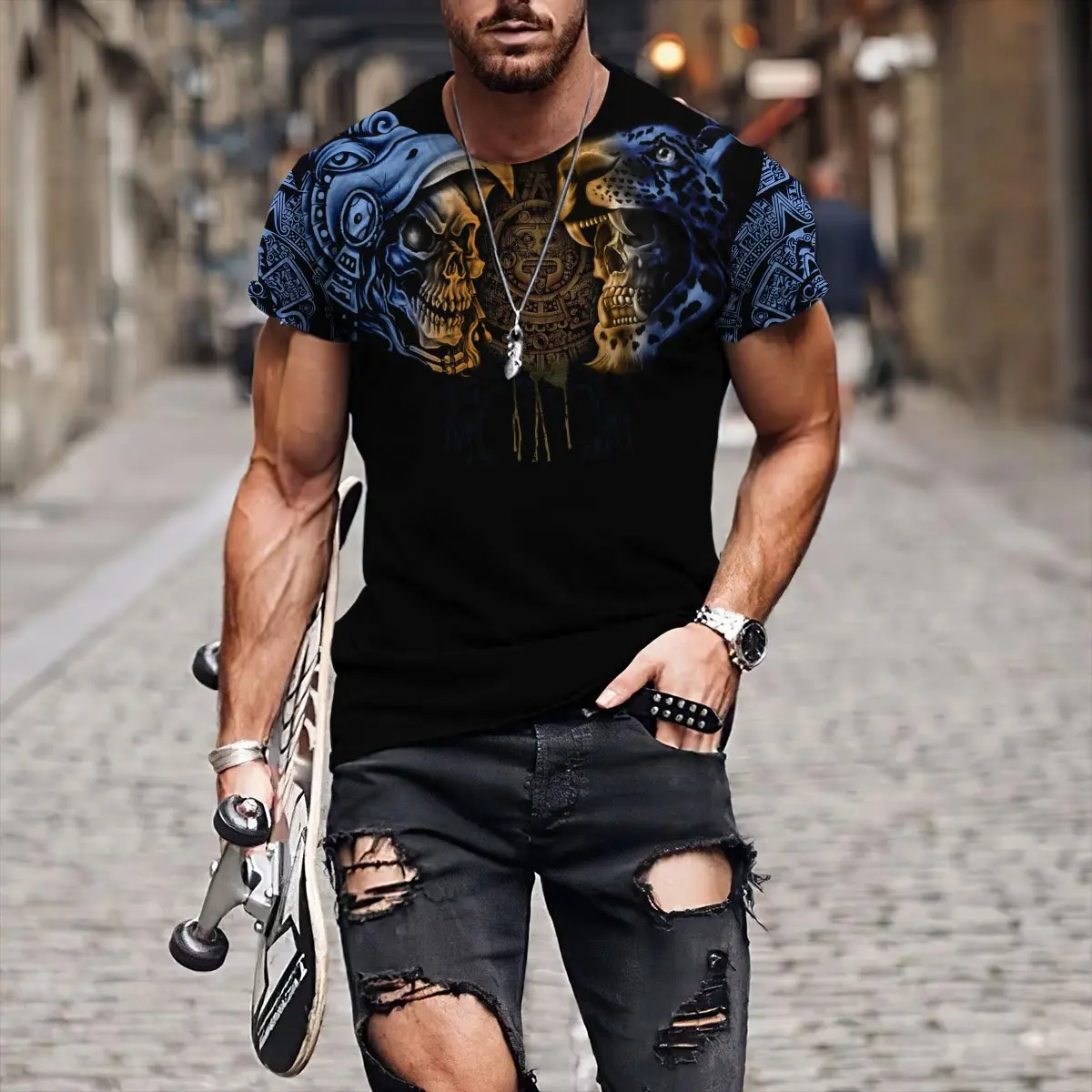 Футболка мужская с 3D-принтом, красивая тенниска с ацтекским мексик...