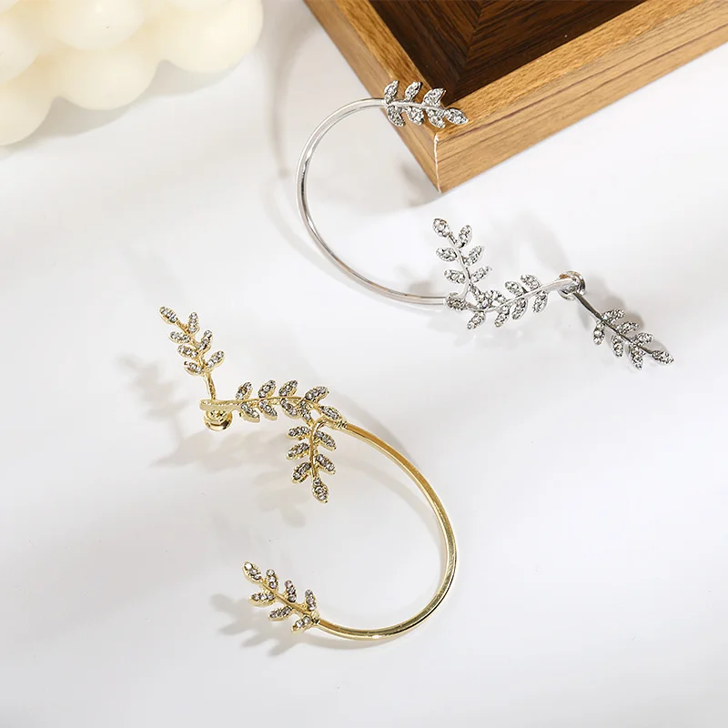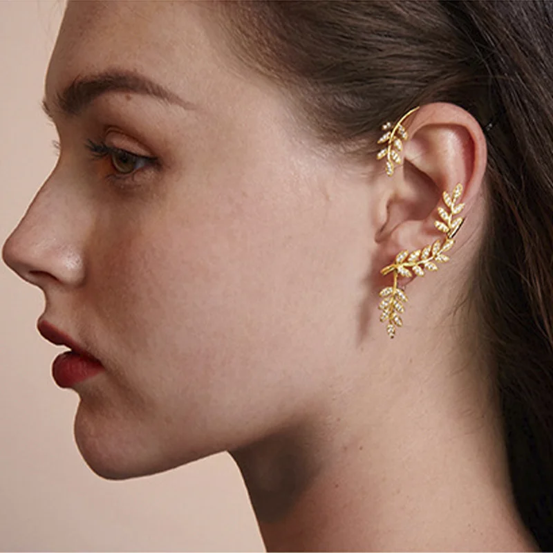 Новые клипсы для ушей без пирсинга с хрустальными листьями, клипсы ...