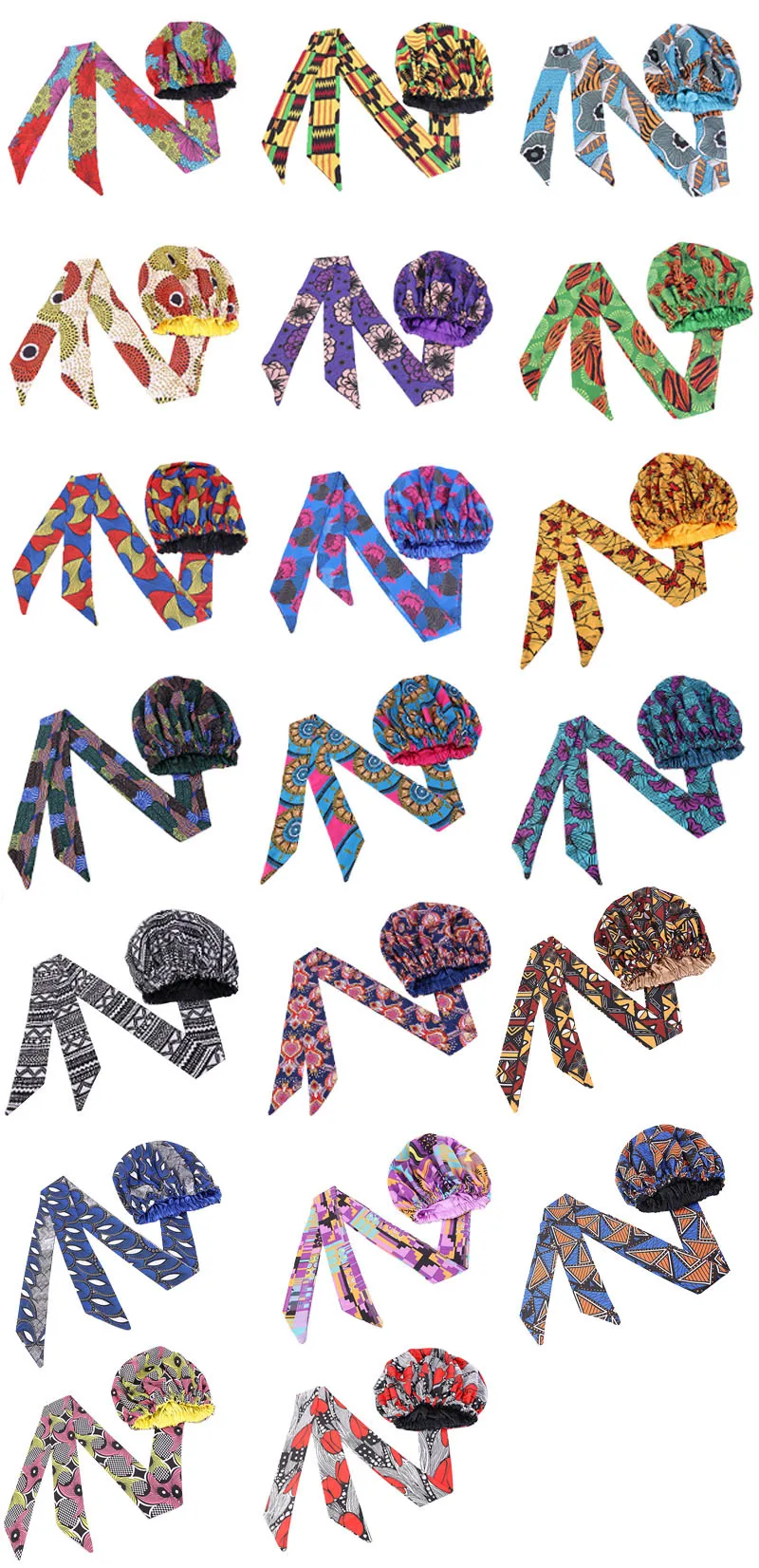 Атласная подкладка с Африканским рисунком, женская шапочка, головной платок, мусульманский тюрбан, шляпы, двухслойные шелковистые женские шапки