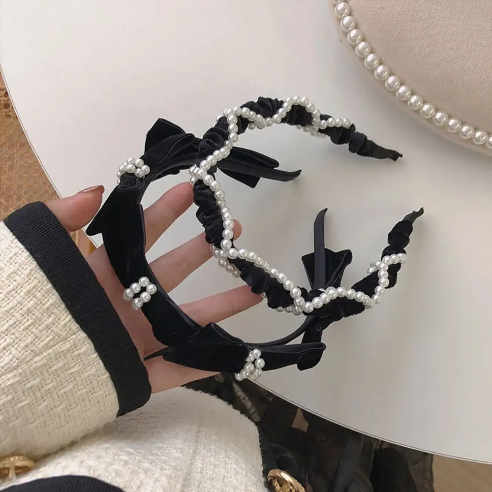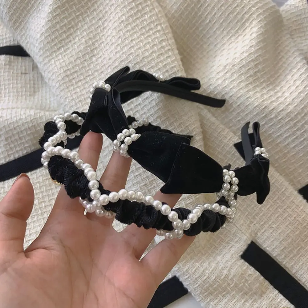 Элегантные Бархатные повязки для волос с жемчугом в стиле ретро, обруч для волос с плетением, суперсказочный обруч для волос, характерный головной убор