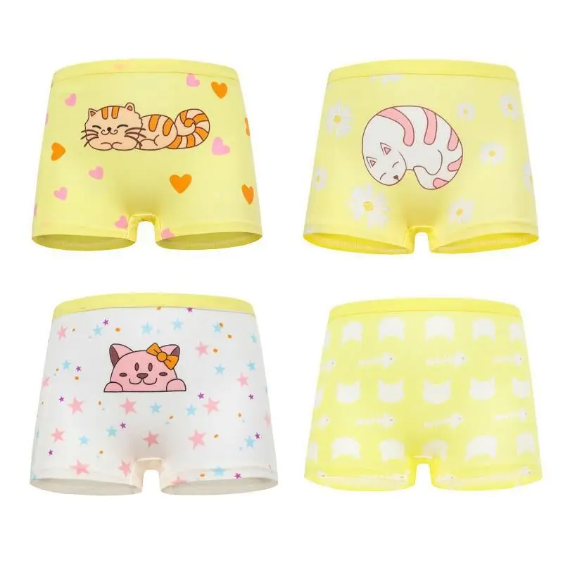 4 шт.Лот, хлопковые трусы-боксеры для девочек 2-10 лет