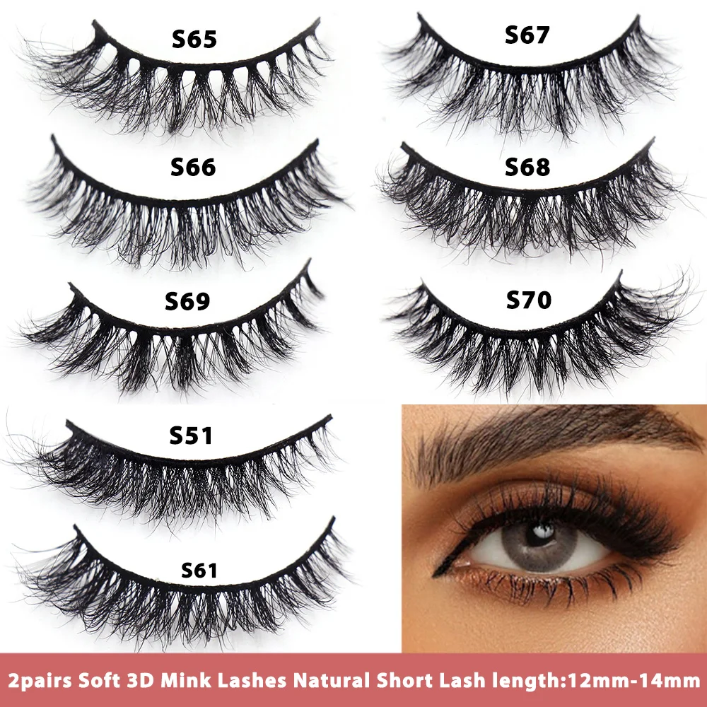 2 пары ресниц Макияж Мягкие 3D норковые ресницы натуральные кудрявые пушистые ресницы короткие объемные Висячие ресницы многоразовые удлинители maquiagem