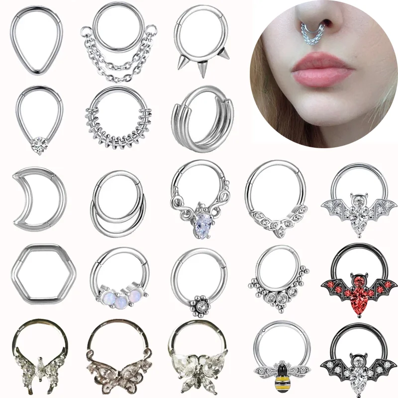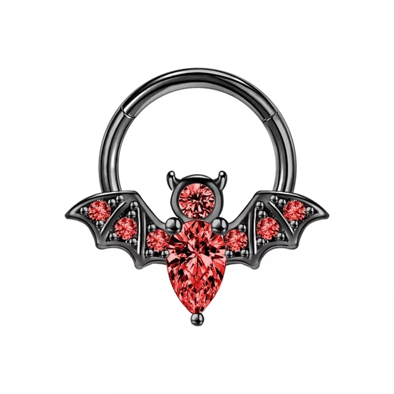 Кольцо для пирсинга носа с бабочкой, наза, перегородка, кольцо для пирсинга из титановой стали, цвет металлик, Козелок, готический пирсинг, с опалом
