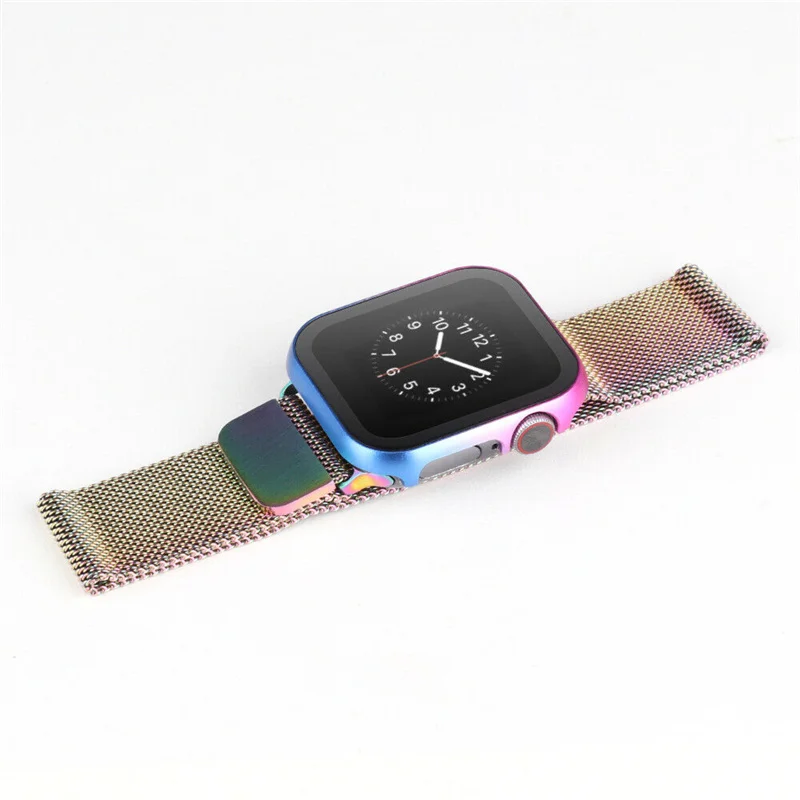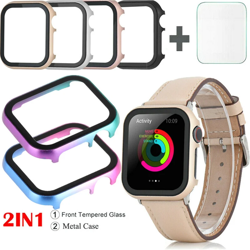 Для Apple Watch Series 7 6 5 4 3 2 металлический защитный чехол из закаленного стекла противоударный бампер для iwatch 41 мм 42 мм 44 мм 45 мм