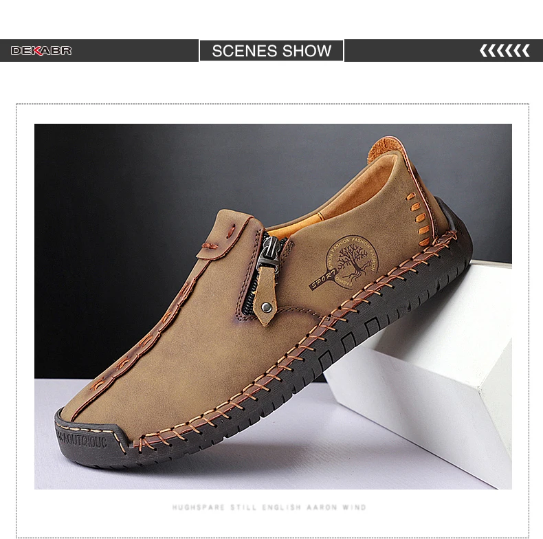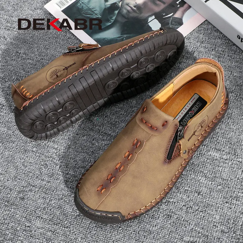 DEKABR/повседневная кожаная обувь ручной работы; Дышащая модная деловая офисная обувь; Легкая мягкая обувь на плоской подошве на молнии; Большие размеры 39-48