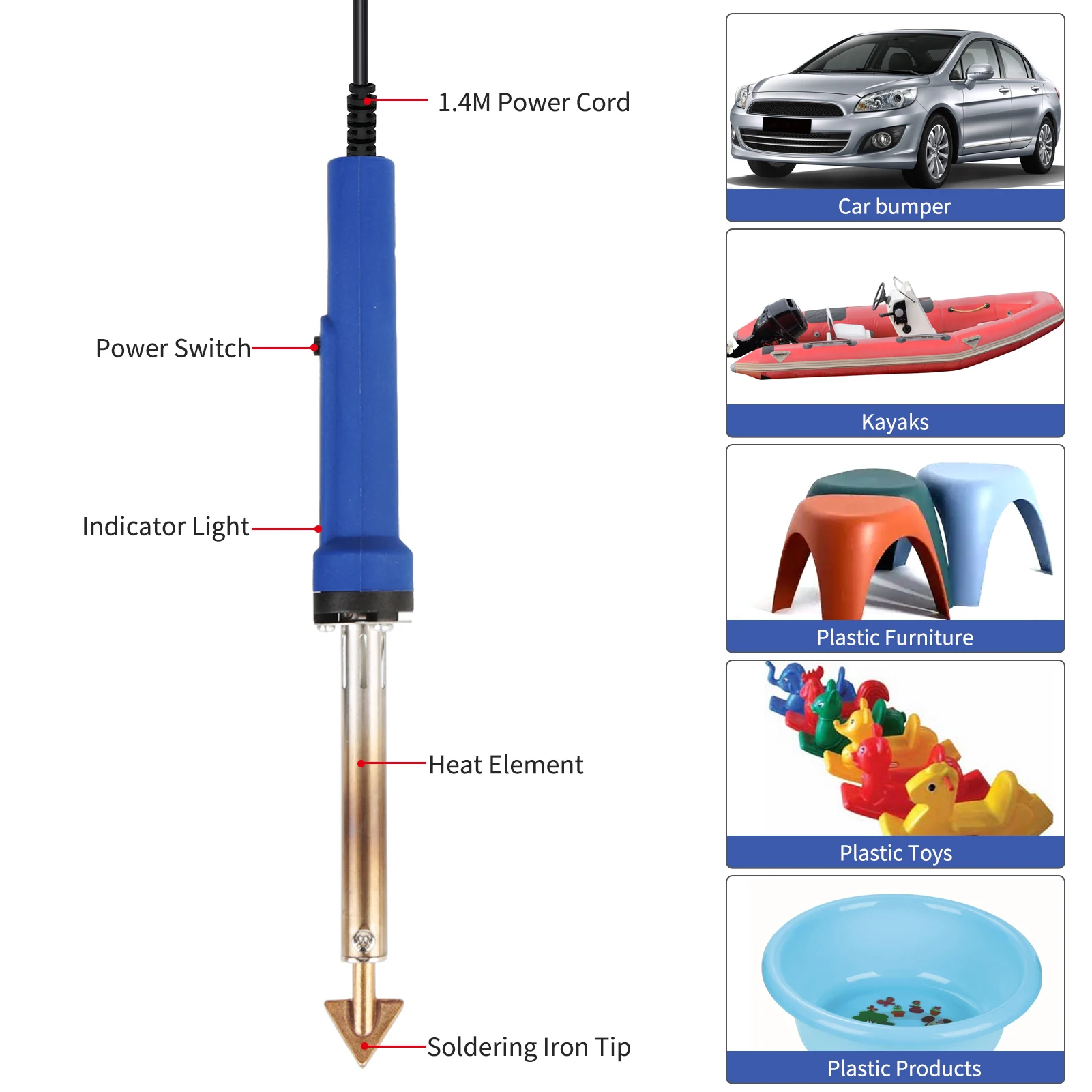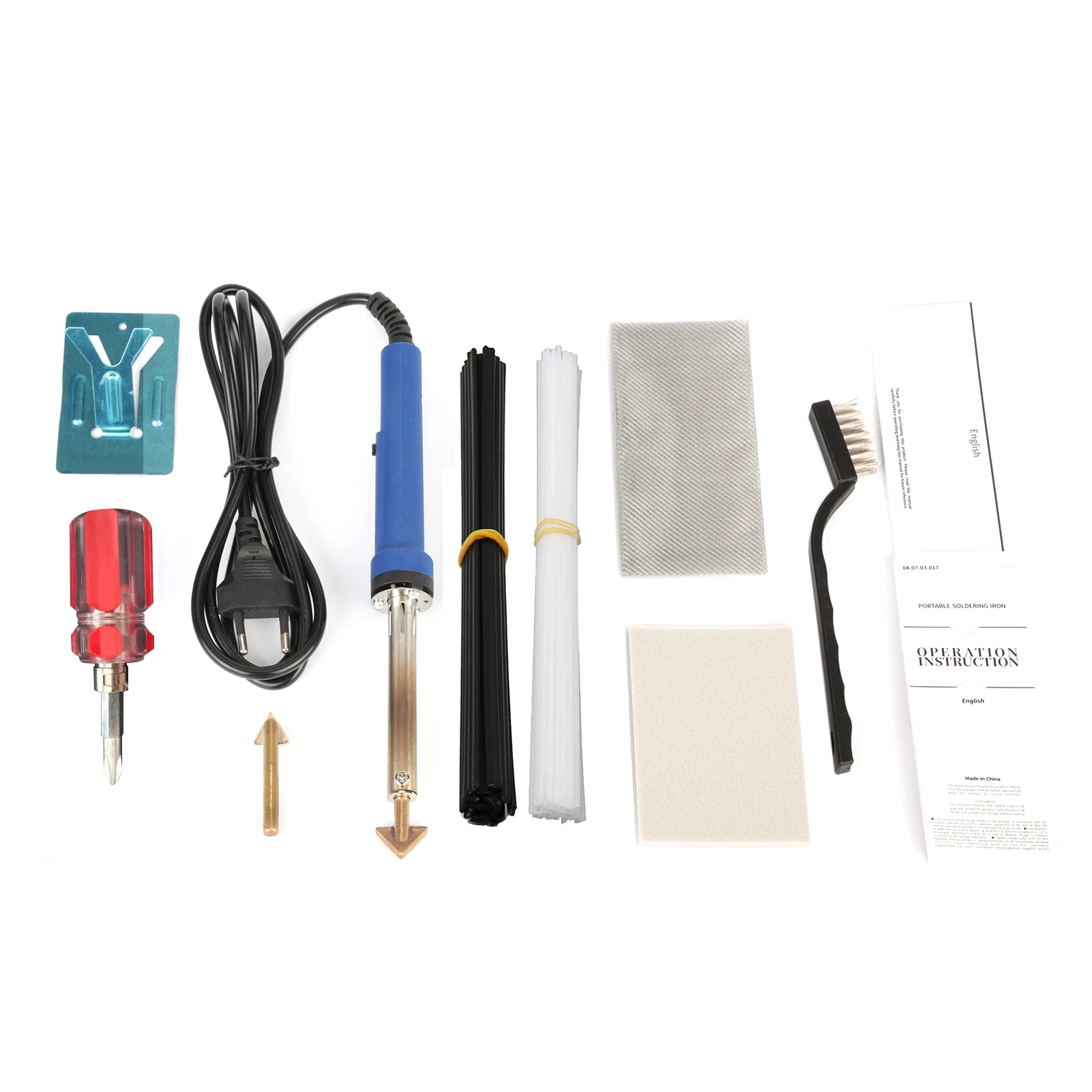Особенности:Идеально подходит для ремонта Каяка бампера и других термопластичных частей (PP, PE, PVC, PS, ABS, нейлон, PC, PET, PBT и т. Д.).Нагревательный элемент имеет мощность 80 Вт и может быть сварен после включения в течение одной минуты.Он обладает коррозионной стойкостью, высокой термостойкостью, длительным сроком службы и хорошей теплопроводностью.Сварочный аппарат "сделай сам" В комплект входит наждачная бумага, 40 пластиковых стержней, 2 наконечник сварочного аппарата, 1 арматурная проволочная сетка из нержавеющей стали, 1 железная подставка, 1 проволочная щеткаБольше тепла проникает в проволочную сетку для сварки нагревается до 390 °F до 896 °F. Пару минут.Характеристики:Вилка: ЕСМощность: 80 ВтРазмер страницы: 18х10х5смВес посылка: 300 гУпаковочный лист: x1 х пластиковый сварочный аппарат2 наконечника из твердой латуни (разные размеры, на один больше, на один меньше)Железная подставка-1 шт.1 х сетка1 х проволочная щетка20 черных пластиковых стержней20 белых пластиковых стержней.1 х наждачная бумага