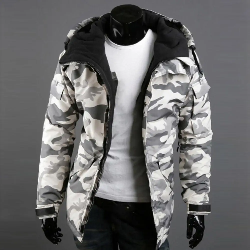 Мужское камуфляжное пальто с капюшоном, утепленная куртка на молнии...