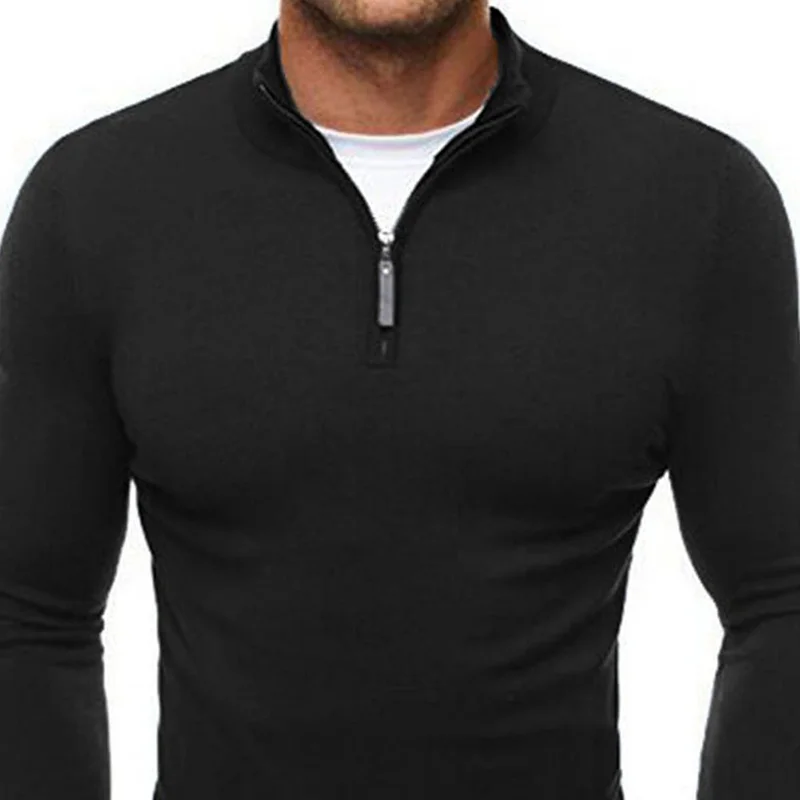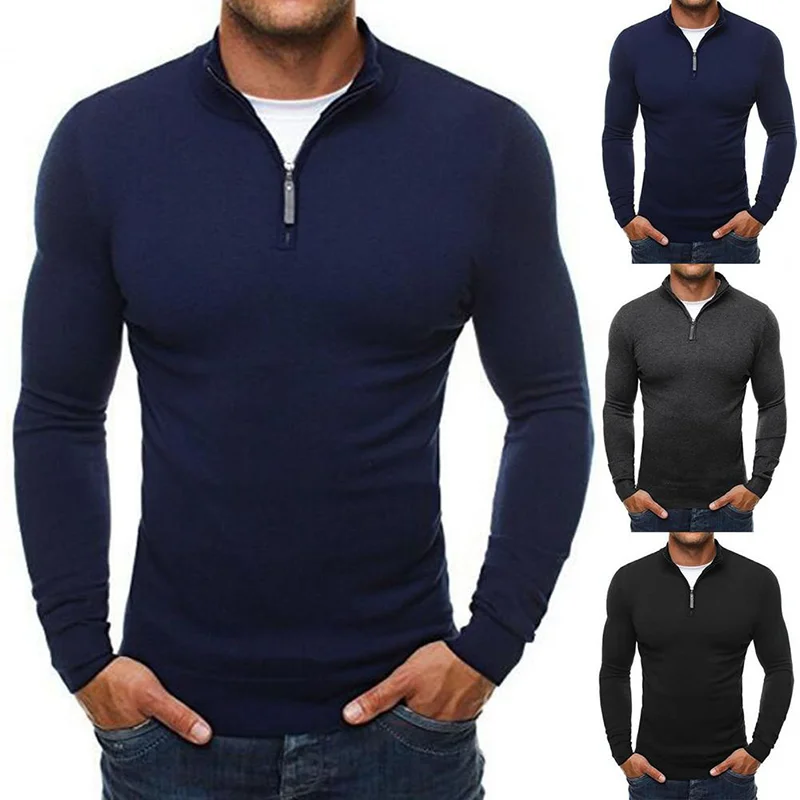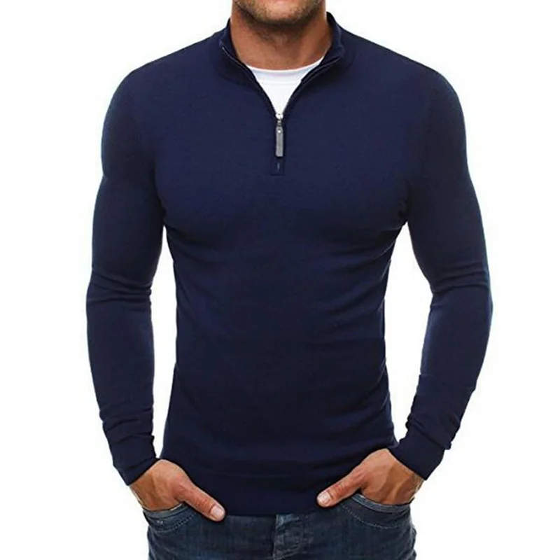 Мужской повседневный облегающий кардиган с ложным воротником на молнии